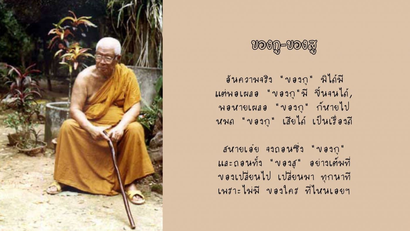 ศาสนาที่แท้จริงอยู่ที่กายกับใจ คือ กายรู้ จิตตระหนักรู้ ทุกอย่างจะเข้าที่ ชีวิตดีก็มีสุข ทุกวันก็พ้นทุกข์ และสุดท้ายก็พบทางนิพพาน ศาสนานี่ที่แท้จริงอยู่ตรงนี้ (สติและสัมปชัญญะ)