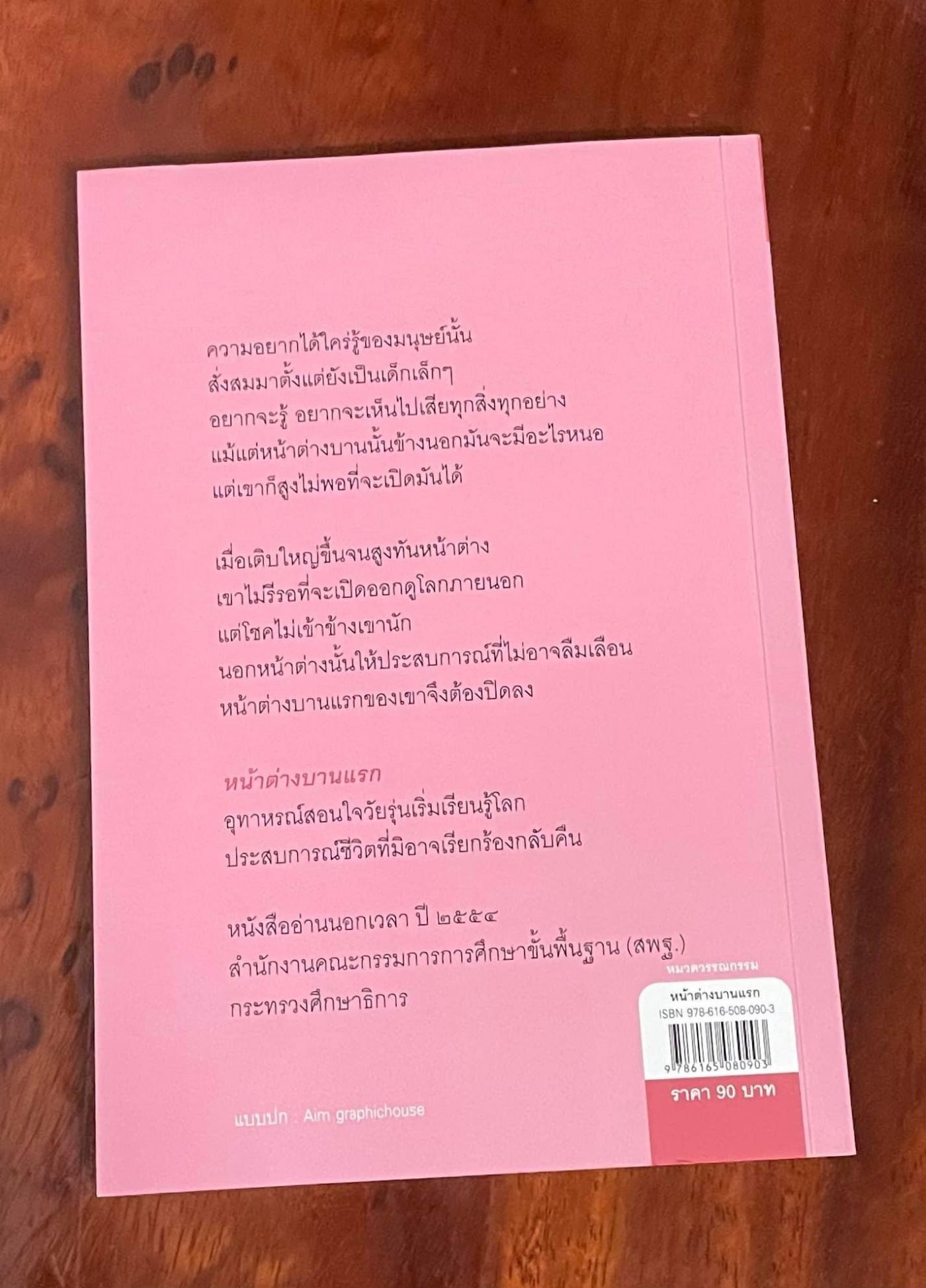 หนังสือหลังปกของเรื่องหน้าต่างบานแรก