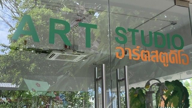 ห้องที่ล้อมรอบด้วยกระจกใสมองเห็นภายนอกได้ชัดเจน ด้านหน้ามีของเล่นสำหรับเด็กเล็กและสวนน้ำที่ยังไม่เปิดให้บริการเนื่องจากสถานการณ์โรคระบาดโควิด-19 ทำให้มักจะมองเห็นเด็ก ๆ ที่มาเล่นของเล่นบริเวณหน้าห้องบ่อย ๆ พี่เจ้าหน้าที่มีทั้งหมดสองคนด้วยกันคือ พี่หนึ่งที่เป็นนักพัฒนาของโซนศิลปะและพี่เอ็กซ์ที่เป็นเจ้าหน้าที่