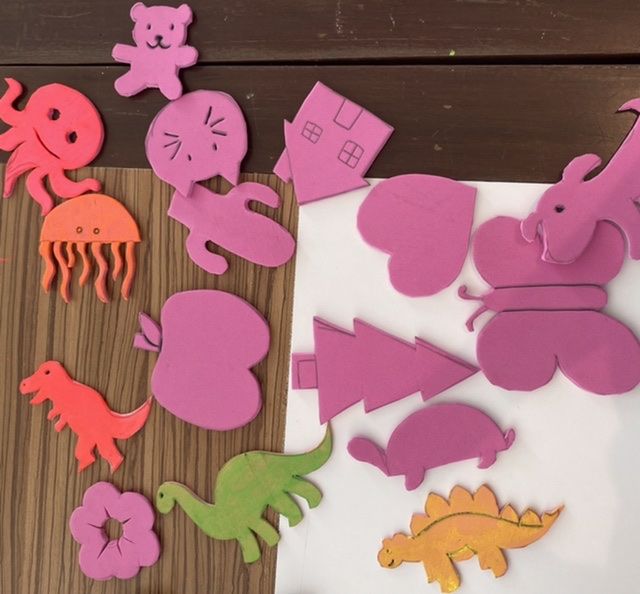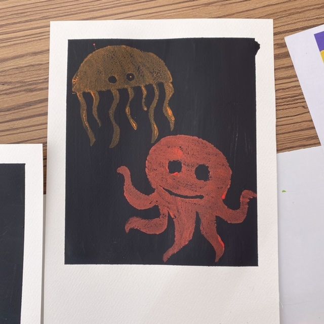 กิจกรรมนี้เหมาะสำหรับเด็กอายุ 6-12 ปี เนื่องจากสีที่ใช้เป็น acrylic ถ้าเปื้อนเสื้อแล้วจะซักออกยาก ทำให้ไม่เหมาะสำหรับเด็กเล็ก วิธีทำคือ ระบายสีให้ทั่วแม่พิมพ์จากนั้นนำมาพิมพ์ลงในกระดาษ จากนั้นใช้ลูกกลิ้งสำหรับพิมพ์ภาพช่ายกลิ้งทับให้สีติดกับกระดาษชัดขึ้น