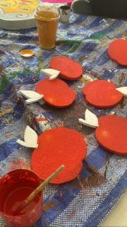 นอกจากกิจกรรมศิลปะสำหรับเด็กแล้ว ยังได้ร่วมทำของสำหรับตกแต่งเวทีในงาน Young Creative อีกด้วย ได้ร่วมวาดและระบายสีและตัดโฟมทั้งหมด 2 งานด้วยกัน