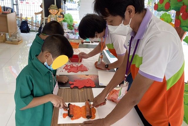 เด็กสามารถใช้สีที่ให้ได้อย่างอิสระ สามารถผสมสีหรือขอเพิ่มได้ หากเด็กที่เข้ามาอายุต่ำกว่า 4 ปี สามารถทำกิจกรรมพร้อมผู้ปกครองได้
