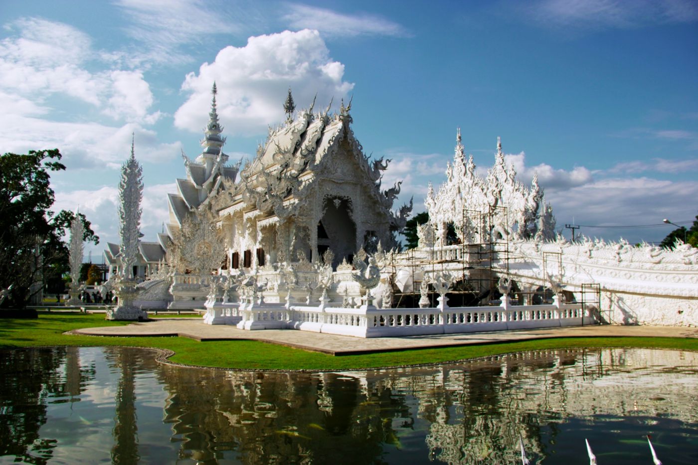 แน่นอนว่าวันนี้พวกเราจะต้องใช้เวลาให้คุ้มด้วยการเที่ยวอย่างต่อเนื่อง ใช้เวลาประมาณครึ่งชั่วโมงจากวัดร่องขุ่น เราก็มาถึง อ่างเก็บน้ำแม่สรวย หรือที่ใครๆ ก็เรียกว่าเขื่อนแม่สรวย ความสดชื่นลอยเอื่อยๆ มาสัมผัสผิว ผืนน้ำส่องประกายวิบวับตอนที่แสงแดดตกกระทบ