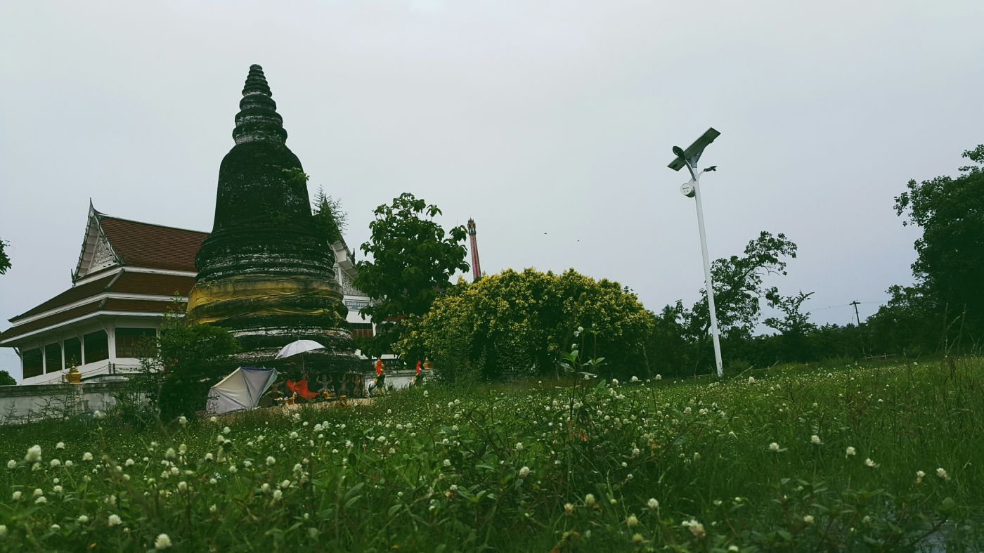 ที่แรกที่พวกเราไปกันคือวัดที่อยู่ฝั่งตรงข้ามที่พัก ที่เราต้องขับรถข้ามสะพานอ้อมไป (ทุกคนแต่ตัวสีสันสดใสตัดกับความครึ้มของท้องฟ้ามาก น่ารัก) ไปแวะไหว้สิ่งศักดิ์สิทธิ์และเดินดูรอบๆ มีเจย์ดีโบราณด้วยสวยดี