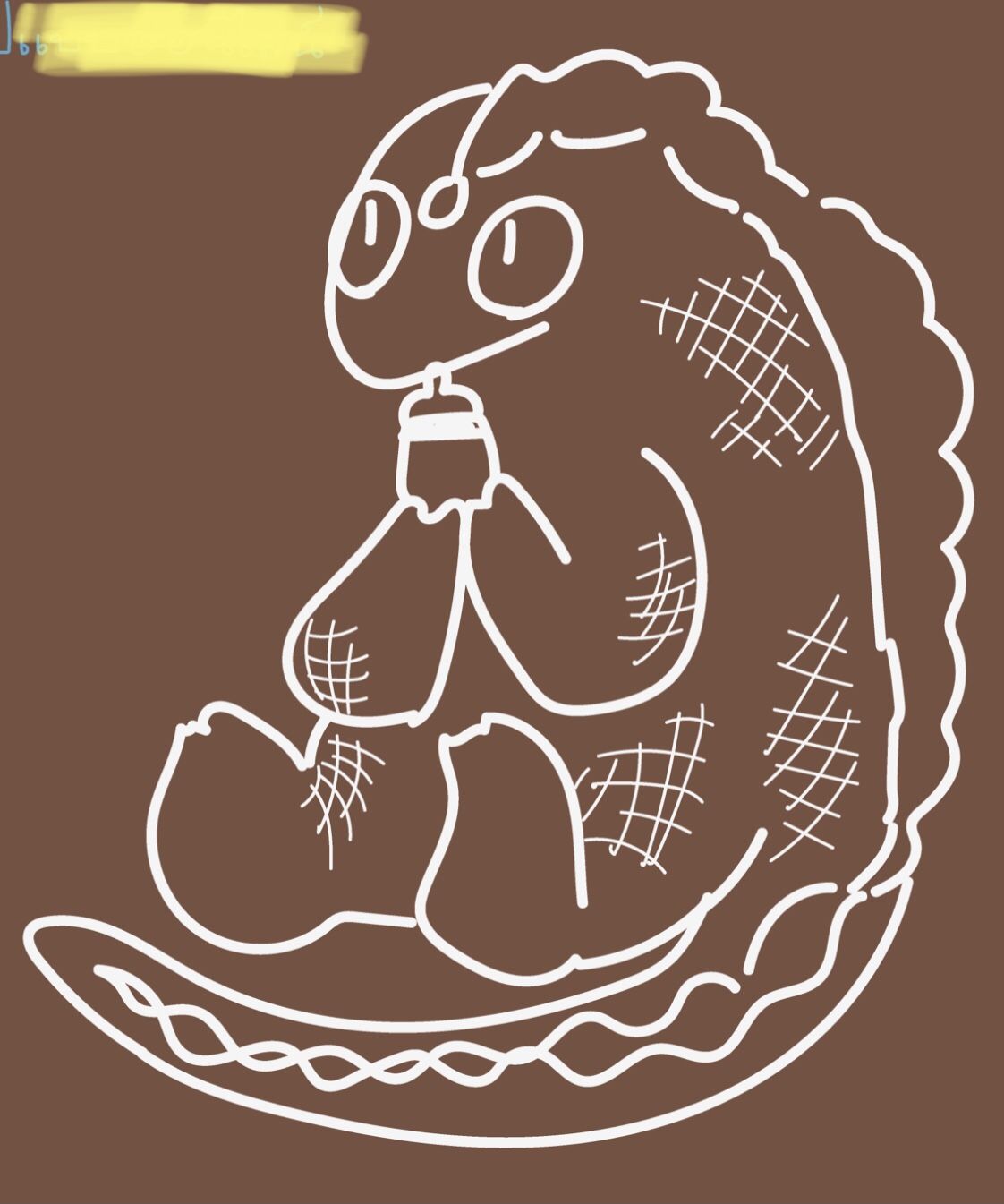 (เนื่องจากภาพจริงใหญ่เกินไปจึงได้ถ่ายหน้าจอจากโทรศัพท์แทน) ช่วงนี้กำลังชอบวาดลายเส้นสีขาว และสีพื้นหลังเป็นสีมดลูก (สีที่เด็กเห็นแล้วใจสงบ ออกโทนแดงแต่ไม่แดง ที่น่าจะเรียกว่าสีซีเปียร์)
