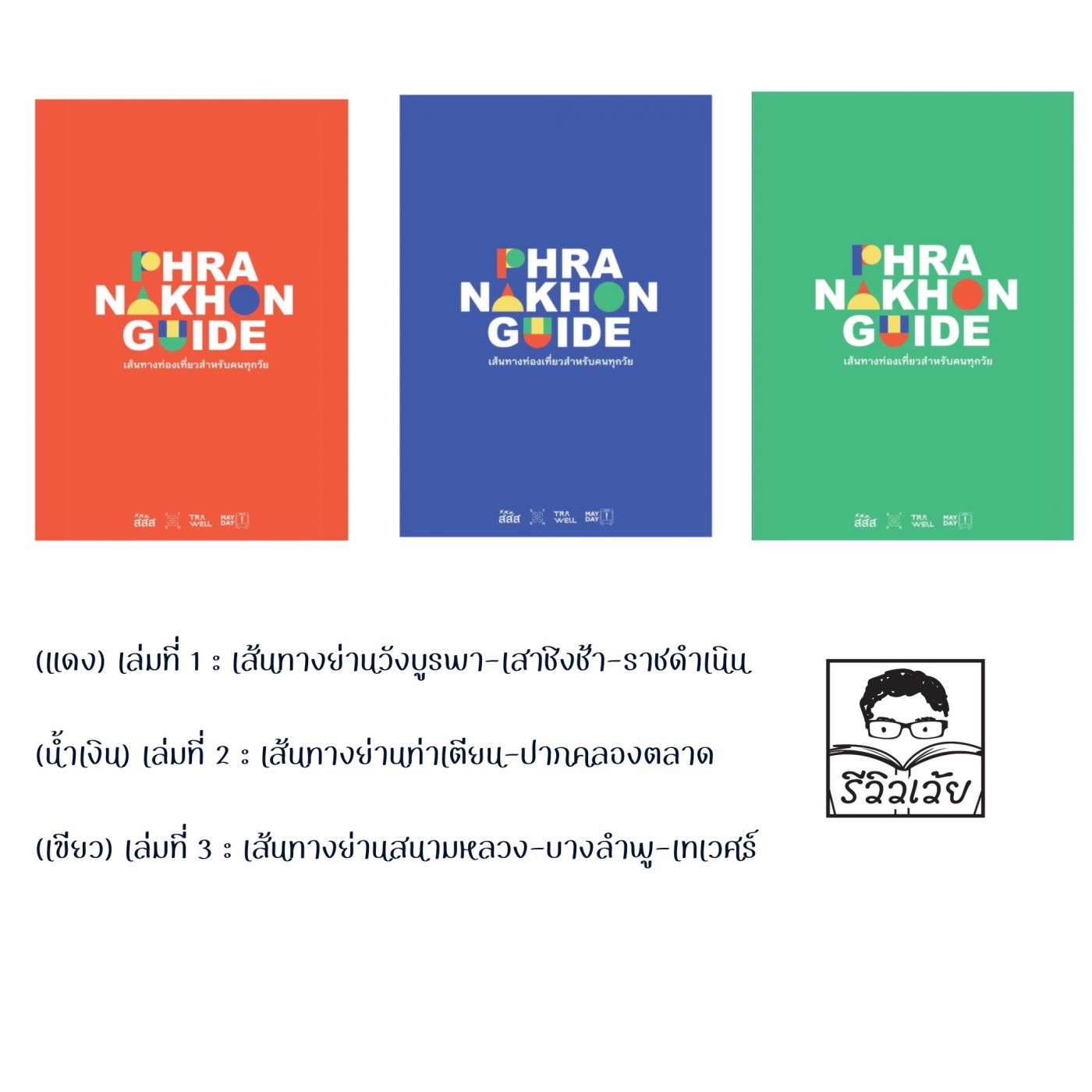 "PRANAKORN GUIDE พระนคร เมืองใจดี เที่ยวได้ทุกวัย" แบ่งออกเป็น 3 เล่มดังต่อไปนี้
