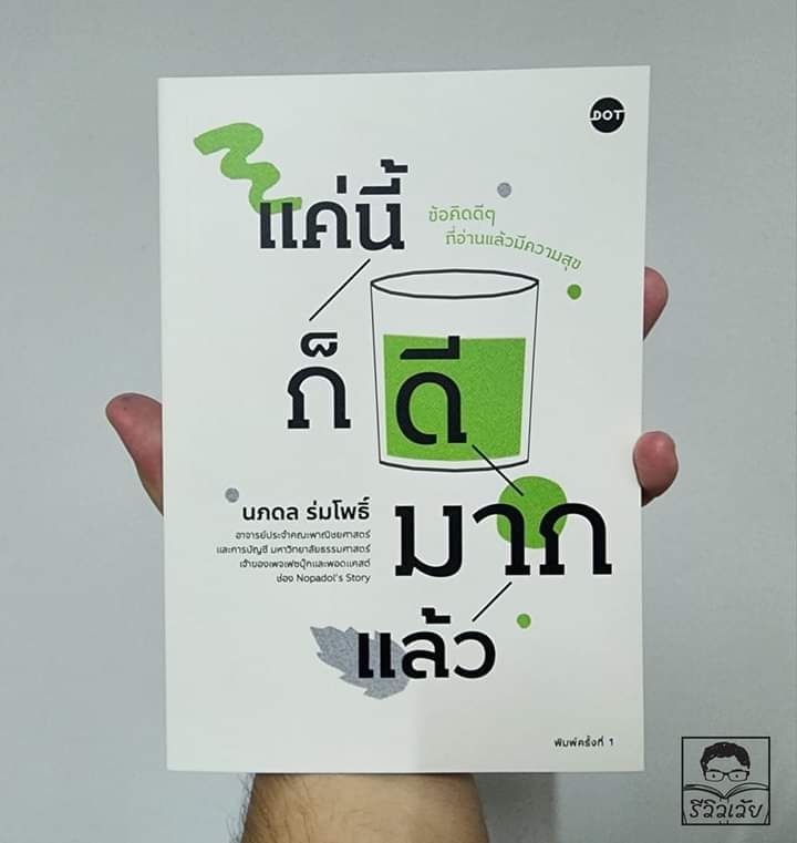 หลายข้อเขียนที่ปรากฏใน "แค่นี้ก็ดีมากแล้ว" ชวนเรามองชีวิตในมุมที่หนังสือบอกให้เราลองหันกลับมามองดูตัวเราเอง ว่าเราไหวไหม หนักเกินไปรึเปล่า หรือเราต้องไปถึงตรงนั้นให้ได้จริง ๆ หรือ และมันคือความต้องการของเราหรือของใครกันแน่ ในหลายครั้งหลายหนชีวิตคนเราอาจจะต้องการแค่