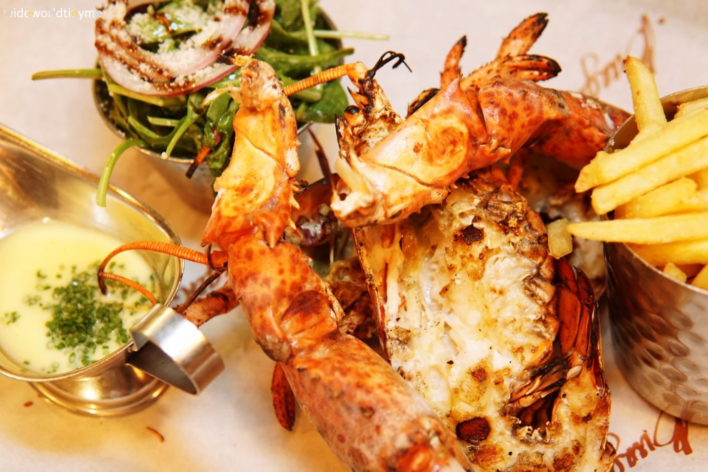 ฉันสั่งแบบขนมปังใส่ล็อบสเตอร์ (ตามยูทูบเบอร์ค่ะ) ส่วนแหนดสั่งแบบล็อบสเตอร์กับสลัด พอลองกินก็ค้นพบว่า มันก็อร่อยนะ แต่แอบเลี่ยนนี่ขนาดฉันชอบกินขนมปัง ยังรู้สึกเลี่ยน แล้วก็เสียดายความกรอบ เนื้อแน่นของล็อบสเตอร์ที่น่าจะเจอน้ำจิ้มซีฟู้ดพี่ไทย คงจะเหมาะสมกันที่สุด