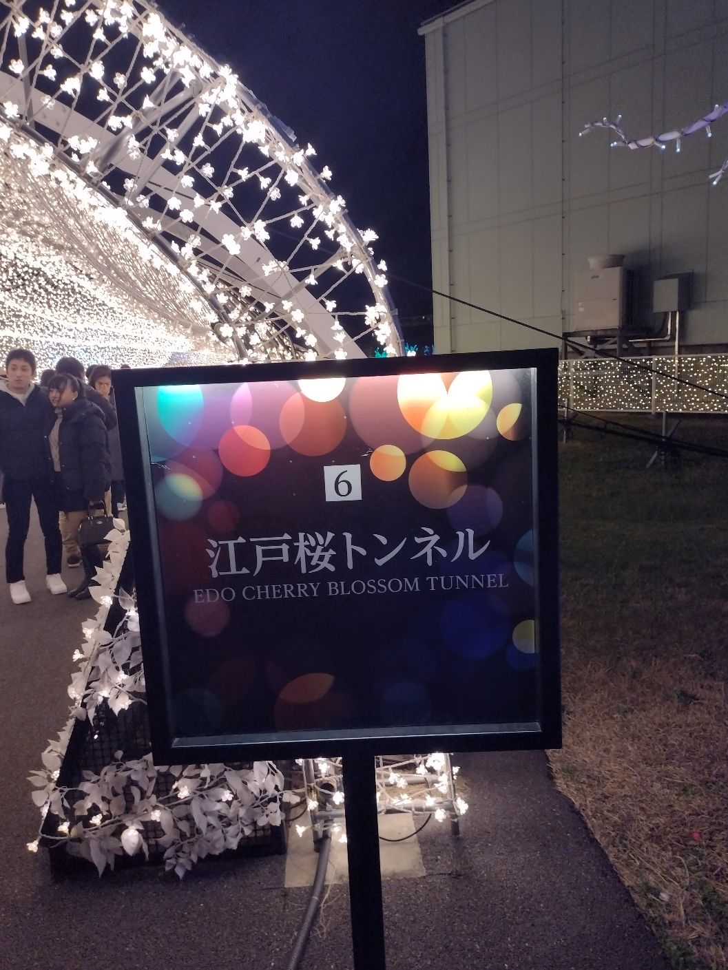 อุโมงค์นี้คือการจำลองดอกซากุระพันธุ์เอโดะที่ประดับด้วยไฟหลายพันดวง ก่อร่างสร้างเป็นอุโมงค์ให้พวกเราเข้าไปเยี่ยมชมความสวยงามของดอกซากุระสายพันธุ์นี้ ซึ่งซากุระพันธุ์นี้ กลีบดอกจะซ้อนกันหลายชั้น ค่อนข้างเหมือนกุหลาบมากกว่าซากุระ รอบนอกจะเป็นสีขาว ส่วนตรงกลางจะออกสีชมพูแดง ๆ ค่ะ เดี๋ยวชิจิจะแปะรูปซากุระเอโดะของจริงให้ด้านล่างนะคะ