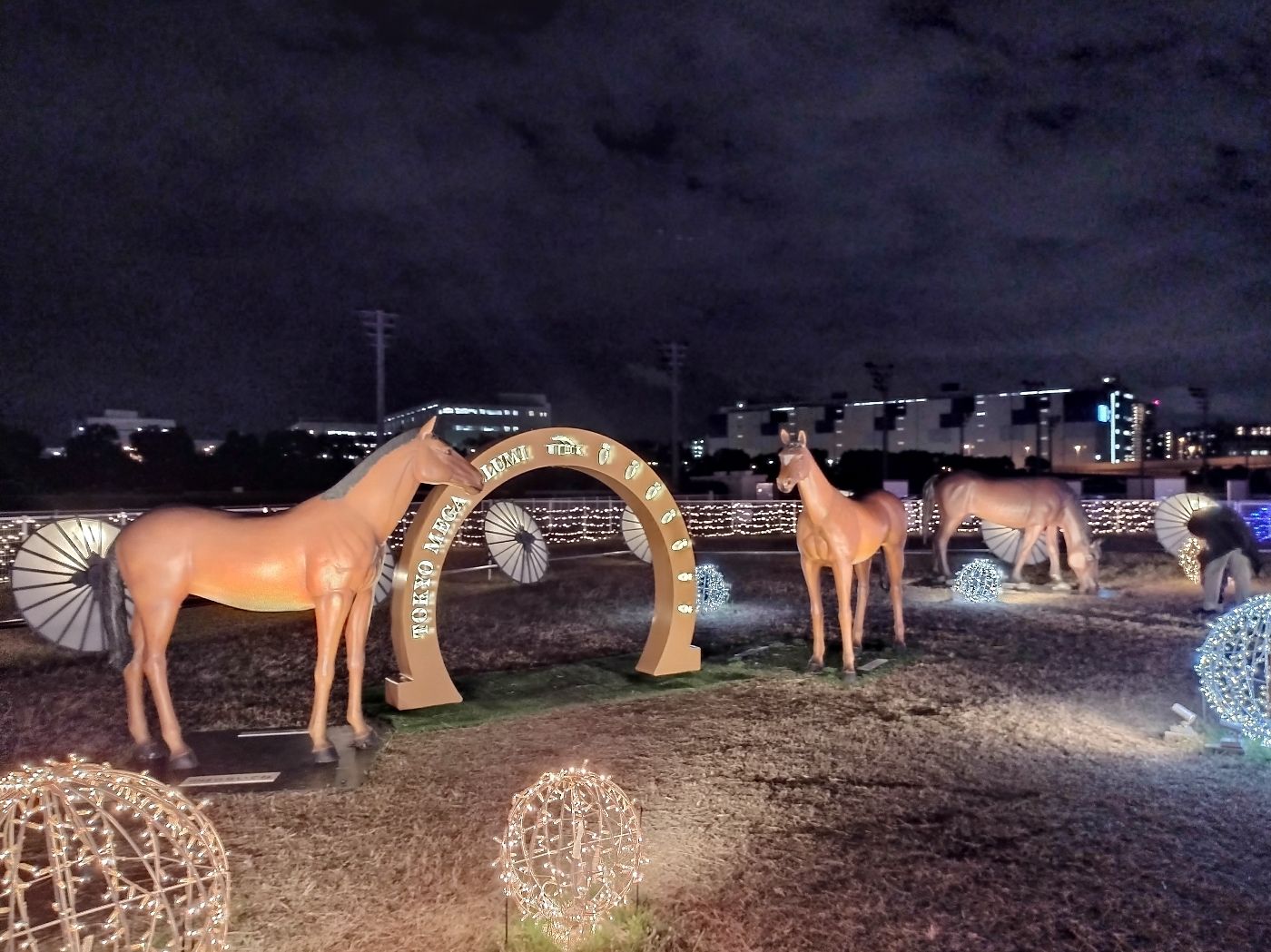 อย่างที่ชิจิกล่าวไว้ข้างต้น ว่าชิจิสนใจสถานที่จัดงานครั้งนี้ เพราะงานนี้จัดขึ้นที่สนามแข่งม้าTokyo City Keibaค่ะ ธีมต่าง ๆ ของงานไฟประดับนี้จึงเกี่ยวกับม้าโดยส่วนใหญ่ และปัจจุบัน สถานที่แห่งนี้ก็ยังใช้เป็นสนามแข่งม้าอยู่ ดังนั้นจึงเป็นเหตุผลว่าทำไมงานประดับไฟนี้จึงไม่ได้เปิดให้เข้าชมทุกวัน เพราะบางวันจะมีรายการแข่งม้าที่นี่จนถึง20:30 จึงไม่สามารถเปิดไฟประดับให้รับชมได้ค่ะ