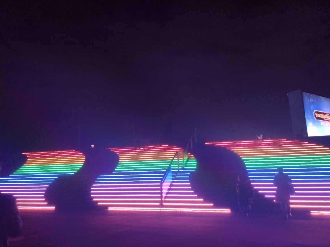 เมื่อเดินออกมาจากอุโมงค์ ก็จะเจอกับบันไดสายรุ้งสุดสวยค่ะ ?