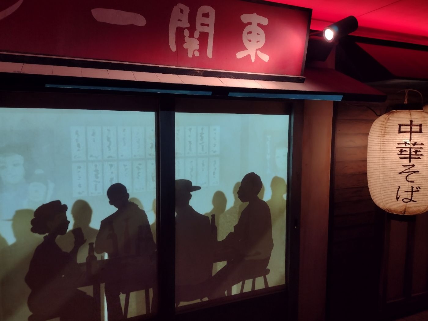 เมื่อเราเดินลงมาตรงอุโมงค์ด้านล่าง จะเห็นว่าจุดนี้จะจัดเป็นธีมเมืองเก่าของญี่ปุ่น ให้ดูว่าเมืองสมัยก่อนของญี่ปุ่นเป็นแบบไหน ซึ่งชาวต่างด้าวอย่างชิจิสนใจตรงจุดนี้มากค่ะ