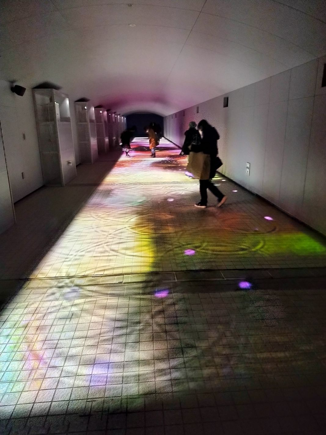 ตรงนี้จะเป็รไฟฉายบนพื้น ราวกับเรากำลังยืนอยู่บนผิวน้ำ สังเกตได้ว่าคนอื่น ๆ ดูสนุกกับการกระโดดเหยียบไฟที่ฉายบนพื้นกันมาก......ใช่ค่ะ ชิจิเองก็เป็น1ในนั้นค่ะ 555555