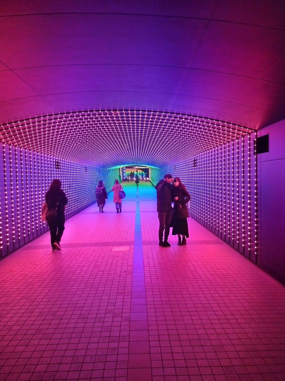 ในอุโมงค์ ไฟประดับจะจะเล่นไปคลื่น ไล่เปิด-ปิดจากด้านหน้าไปเรื่อย ๆ เหมือนเรากำลังถูกอุโมงค์ดูดเข้าไปในส่วนลึก อีกทั้งไฟที่ประดับยังเปลี่ยนสีได้อีก สวยงามตระการตามากค่ะ...