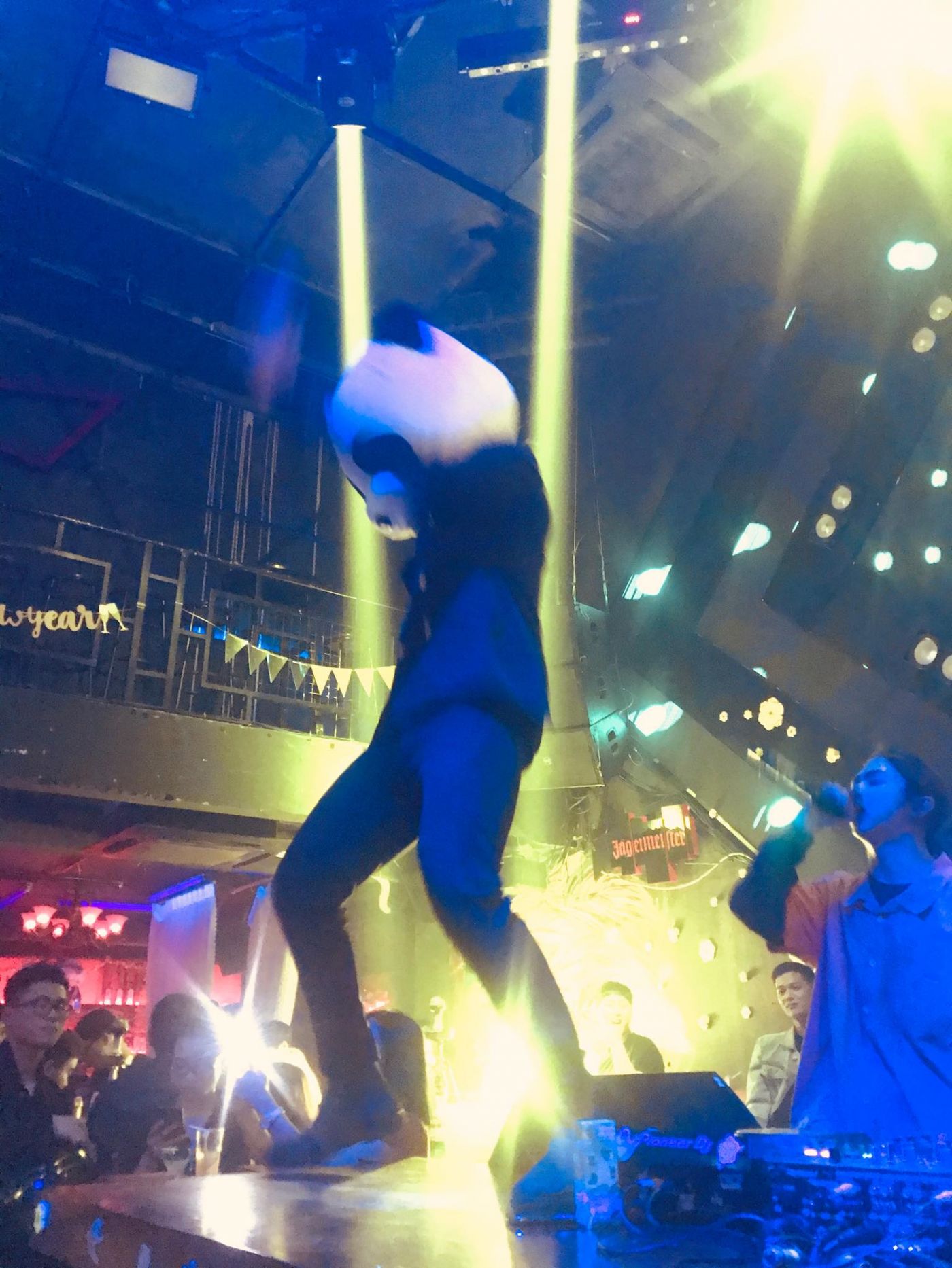 หลายคนเห็นภาพนี้อาจจะตกใจ นี่แหละคือไฮไลท์ของวันนี้ 555555 หลังจากที่พวกเรานั่งชิวกันไปสักพัก เวทีตรงกลางที่เคยสงสัยว่ามีไว้เพื่ออะไร อยู่ ๆ ก็มีคุณหมีแพนด้าในชุดสูทขึ้นมาออกสเต็ปอย่างเมามัน เรียกเสียงร้อง เรียกความตื่นเต้นจากผู้คนในบาร์ไปได้อย่างมาก ในบางจังหวะก็มีลูกค้าคนอื่น ๆ เข้าไปแจมอย่างสนุกสนาน ก็ถือว่าเป็นความบันเทิงที่แปลกใหม่สำหรับพวกเราทั้งสี่ ที่ตรึงตา ตรึงใจ ไม่ลืมกันเลยทีเดียว :P