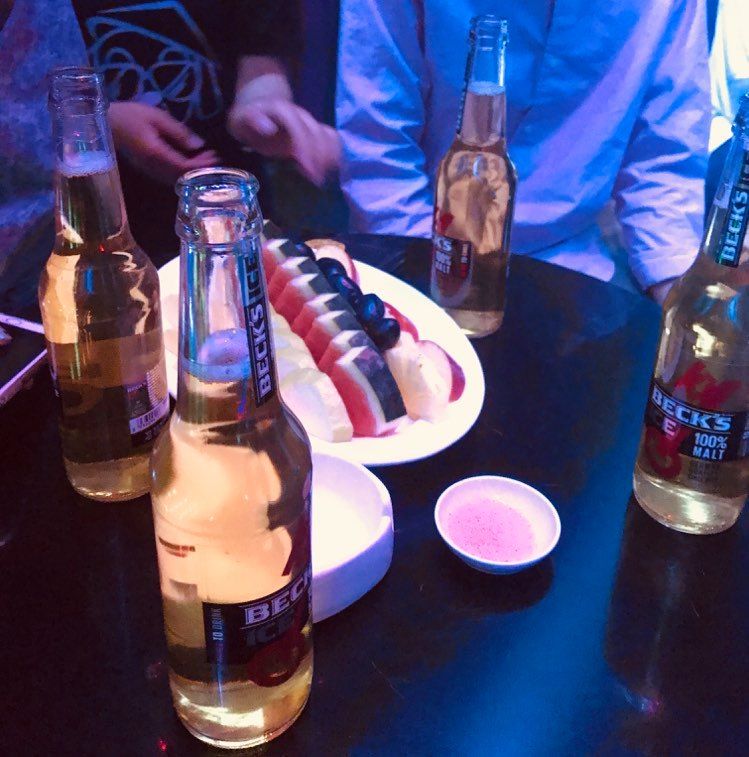พวกเราทั้งสี่ไปถึงร้านกับในเวลาประมาณ 21.30 น. บรรยากาศในร้านเหมือนบาร์ทั่วไป มีดีเจเปิดเพลงแนวEDM สลับกับเพลงตะวันตก และเพลงเอเชียบ้าง มีเวทีตรงกลางซึ่งตอนแรกพวกเราก็ไม่รู้ว่าเอาไว้เพื่อทำอะไร หลังจากได้ที่นั่งแล้ว พนักงานก็นำเมนูมาให้พวกเราเลือก ต้องบอกเลยว่าที่เวียดนามนั้น เบียร์ รา คา ถูก มาก ! ( จากที่เห็นตามในร้านสะดวกซื้อกระป๋องเล็กราคาประมาณ 20 บาทเอง ;__; ) พวกเราทั้งสี่ ไม่ใช่คอเบียร์กันเท่าไร พวกเราจึงสั่งแบบโปร 7 ขวดมา ซึ่งเสิร์ฟมาพร้อมกับผลไม้ 1 จาน ( อันนี้ก็รู้สึกว้าวมาก เพราะที่ไทยกลับแกล้มตอนดื่มน่าจะไม่พ้นถั่ว เอ็นข้อไก่ทอด หรือของคาวต่างๆ ถือว่าเป็นการเรียนรู้ใหม่ที่ดีเลยอิอิ ) รวมทั้งหมดราคาประมาณ 700 บาท ซึ่งสำหรับเราเราว่าไม่แพงนะ