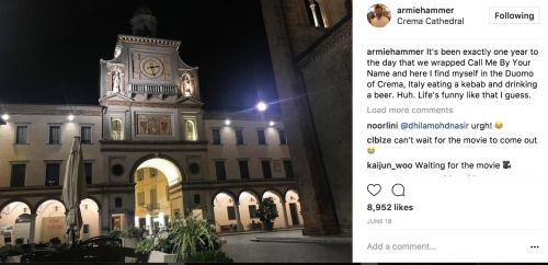 "เราจะไปที่ถ่ายทำหนังเรื่อง Call Me By Your Name ...เห็นมาว่าเขาถ่ายที่สองเมืองนั้น"