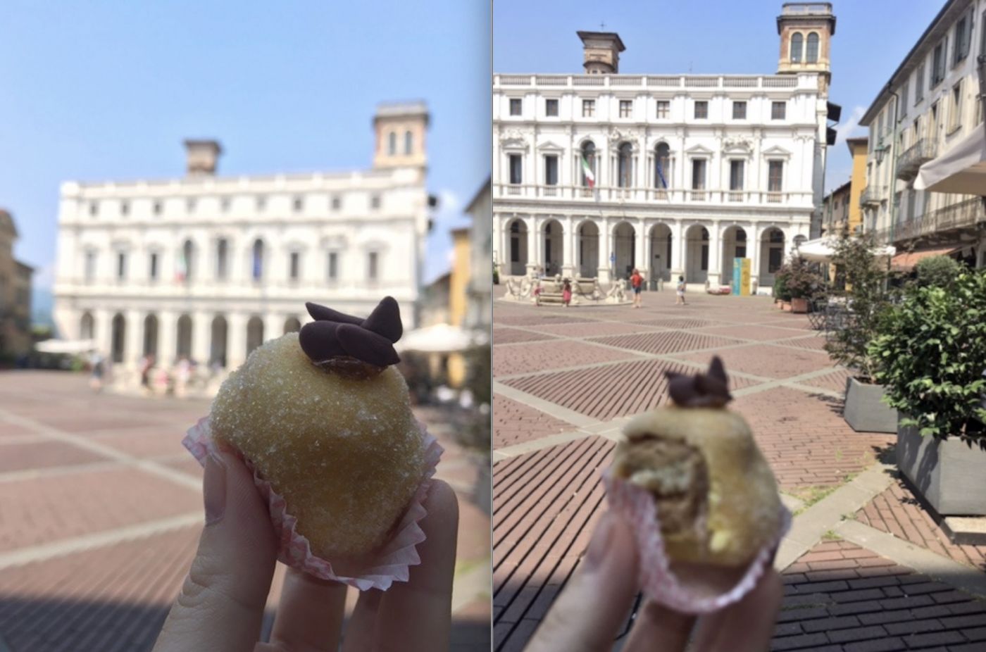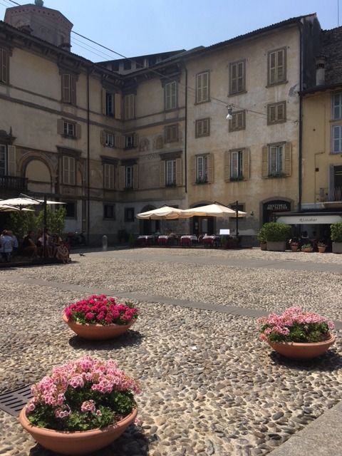 ตรงนี้เป็นใจกลางเมือง จตุรัสหน้ามหาลัยเบอร์กาโม่ เดินเข้าไปอีกนิดจะเจอโบสถ์ ครั้งแรกที่เดินผ่านตรงนี้นี่ตื่นเต้นมาก หายใจหอบแรงกับตึก อากาศร้อนจับใจ และความรู้สึกอิสระอันอธิบายไม่ถูกที่มากับสถานที่โล่งกว้างในเมืองโบราณเมืองนี้