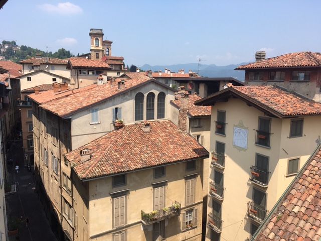 เราชอบออกมานั่งเล่นตรงบริเวณนอกห้องนอน หน้าต่างเปิดกว้างให้เห็นวิวเมืองล่าง (หากหมอกไม่จัดเกินไป โชคร้ายว่ากลางวันของวันที่ไปถึงหมอกลง) และใจกลางเมืองบนข้างล่างตึก เพราะเป็นเมืองท่องเที่ยว ตอนกลางคืน Citta Alta ยังคงมีเสียงเพลงบรรเลงสด และเสียงพูดคุยของผู้คนในร้านอาหารดังแว่วมา
