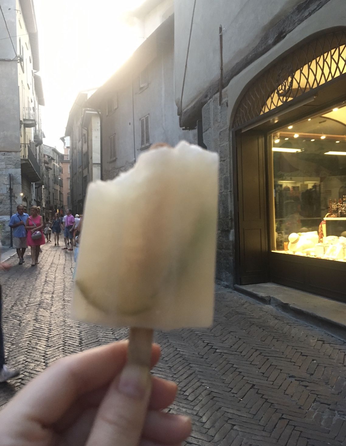 และเมื่อเสร็จสิ้นภารกิจ (ไม่ได้เข้าไปโบสถ์เล็กอีกโบสถ์ที่ทิมมี่และอาร์มมี่เข้าไปสำรวจเพราะปิด) เดินกลับออกมาที่จตุรัสเล็กๆ ก่อนถึงย่านที่พัก เป็นย่านที่มีร้านเจลาโต้ และร้านรวงอื่นอยู่สองฝั่งถนน เพราะเห็นแถวยาวออกมาถึงนอกร้านๆหนึ่ง จึงเดินไปสำรวจ ปรากฏเขาขาย granita กรานิต้า หรือน้ำแข็งเกล็ดใส่น้ำตาล หน้าร้อนนี้อะไรแบบนี้ก็สดชื่นทั้งนั้น