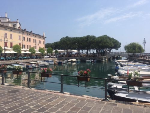 เรากลับลงไปสถานีรถไฟที่เมืองใหม่ล่าง แท้จริง Sirmione เป็นเกาะตากอากาศของคนท้องถิ่นและคนยุโรปในประเทศใกล้เคียง เกาะล้อมรอบด้วยทะเลสาปเกอร์ด้า (Lake Gerda) และเดินทางไปถึงโดยเรือจากเมือง Descenzano Del Gerda (เพิ่งจะถึงบางอ้อเรื่องชื่อตอนหาท่าเรือเจอในเมือง--)