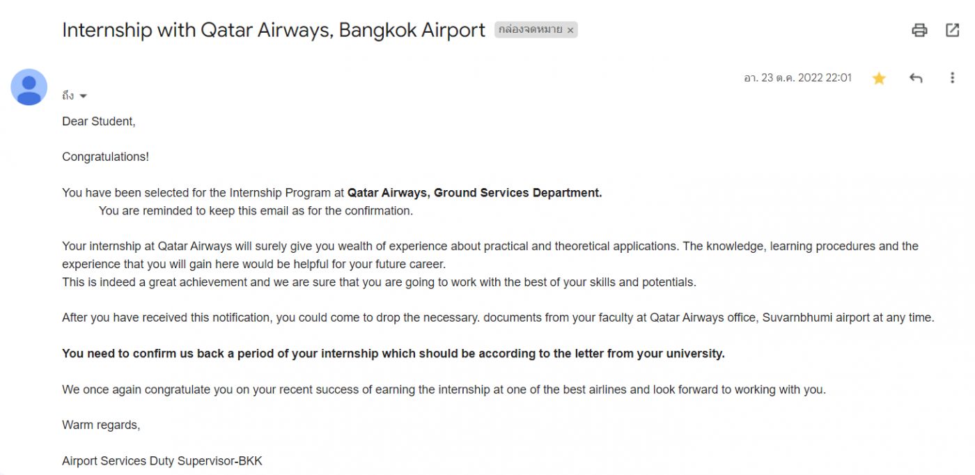 มาถึงจุดนี้ก็ขอแสดงความยินดีด้วยนะครับสำหรับท่านที่ได้ไปต่อ อย่าลืมนำจดหมายจากมหาลัยพร้อมระบุช่วงเวลาที่ฝึกอย่างชัดเจนมายื่นเพื่อยืนยันการฝึกงานอีกครั้งด้วยนะ