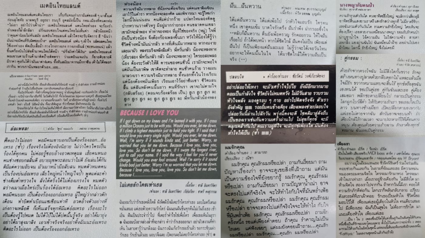 ผมเองเริ่มต้นจากการค้นรูปเทปเพลงที่วางขายตามเฟซบุ๊ก ซึ่งบางโพสต์จะกางปกหน้าหลังชัดบ้างเบลอบ้าง ซึ่งนี่แหละ คอนเทนต์ชั้นดี ผมเองเป็นคนชอบหาเครดิตคนแต่งเพลงเก่ามาก ๆ และความรักคำเดียวสามารถต่อยอดไปได้ทุกเส้นทางเลย