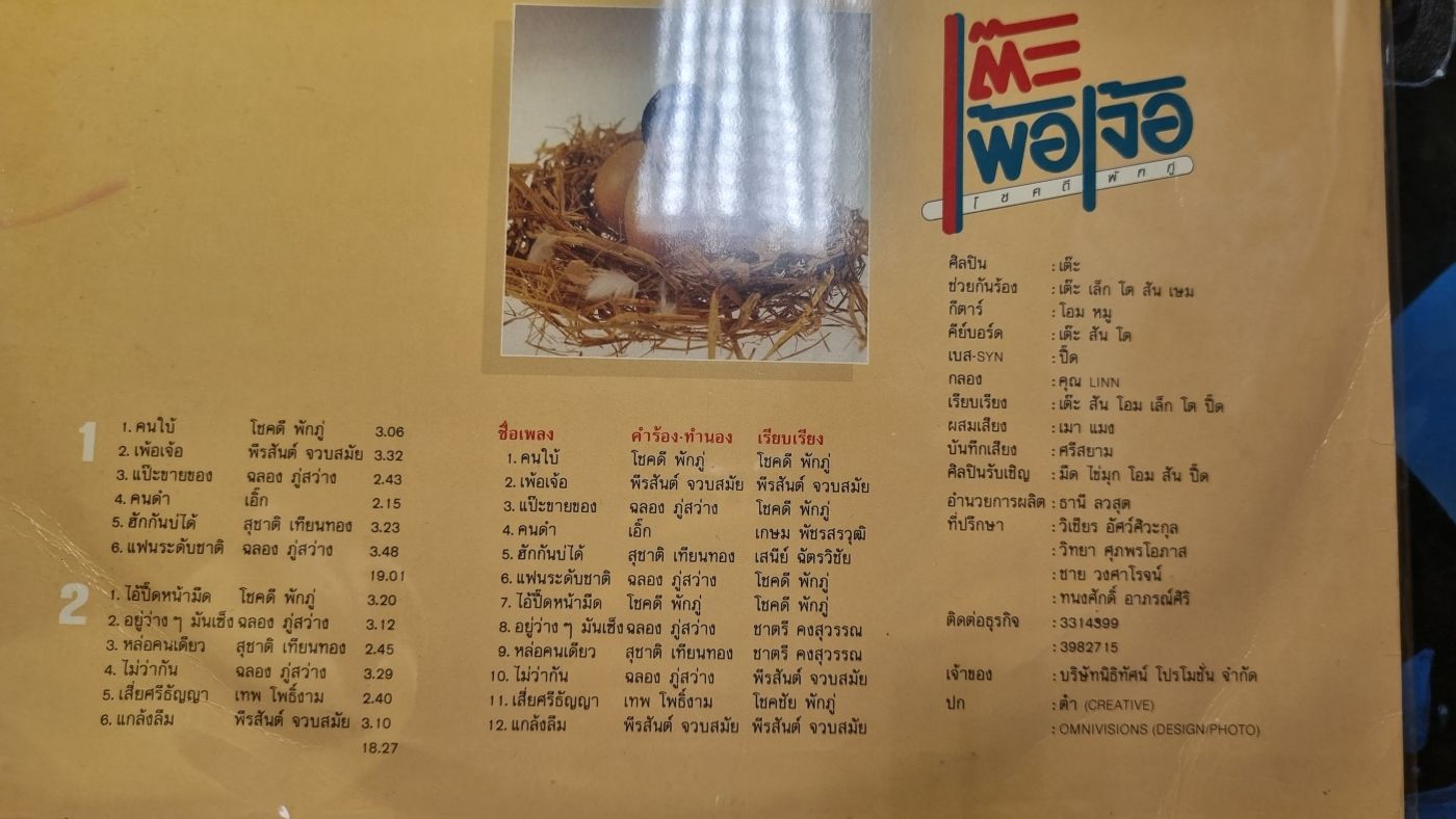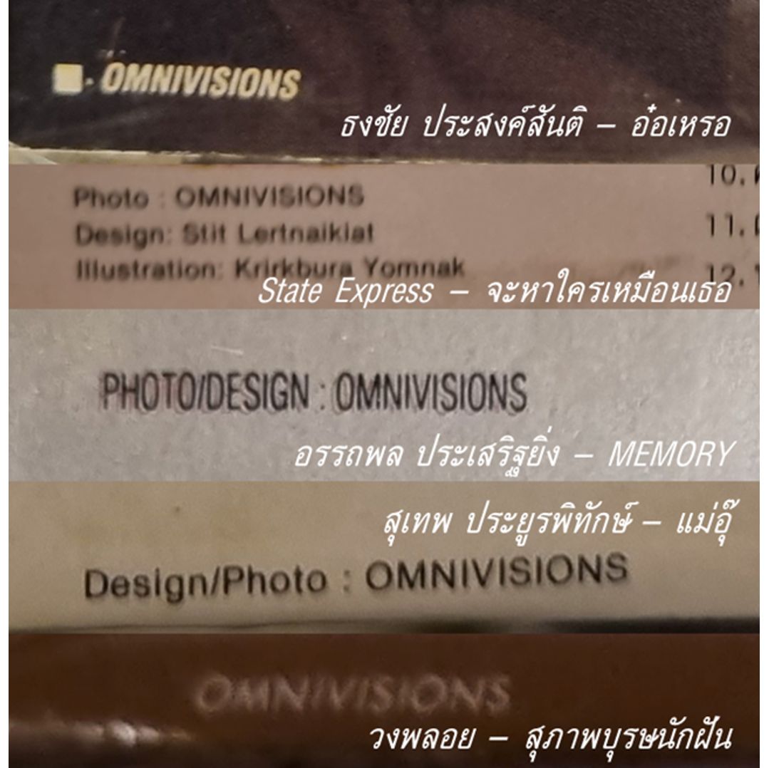 แถมพิเศษ : มนตร์เสน่ห์ของเลย์เอาท์เนื้อเพลงและเครดิตคนทำงานสมัยก่อนในยุครุ่งเรืองเพลงไทย ตามคำบอกเล่าของพี่เสือ ธนพล ในรายการป๋าเต็ด ทีมงานจะต้องเขียนด้วยมือ แล้วไปสั่งตัวเรียงพิมพ์ข้างนอก แล้วเอามาตัด-ปะ-จับฉาก ก่อนที่จะมีคอมพิวเตอร์มาทุ่นแรง (ถ้าคิดถึงฟอนต์ในรูปนี้ ลองโหลดฟอนต์ JS Sadayu และ JS Synjai มาลองใช้เล่น ๆ ได้นะครับ / ผู้เขียน)