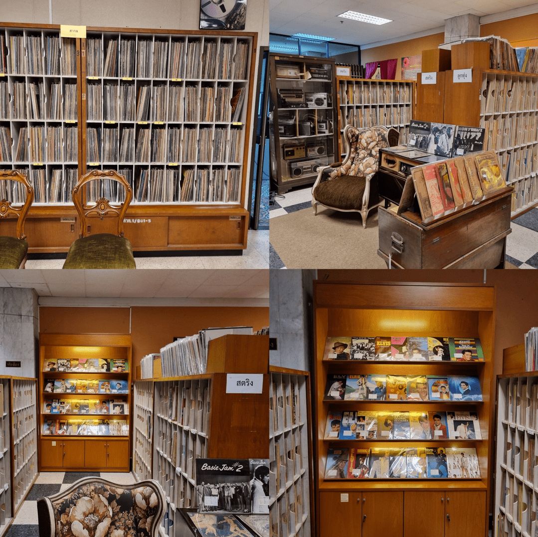 ถ้าคุณเองเข้าไปในตัวพิพิธภัณฑ์ จะเห็นชั้นวางแผ่นเสียงที่เป็นคลังแสง มีครบทุกแนวตั้งแต่สตริง ลูกทุ่ง ลูกกรุง และสากล โดยจะแบ่งตามตัวอักษร ก-ฮ A-Z "หรือแม้แต่แบ่งเป็นรายศิลปินเลย" (อนึ่ง ถ้าเป็นสายสตริงไทยแบบหายาก จะอยู่ในชั้น "รวมวงดนตรี") ที่นี่จึงได้ขึ้นชื่อว่า..."ห้องสมุดแผ่นเสียง"