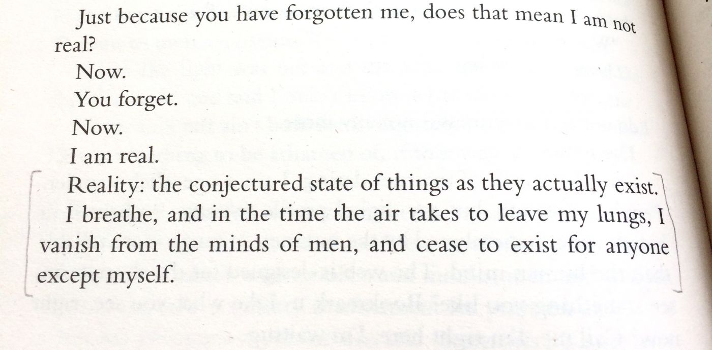 การบรรยายทั้งหมดถูกเล่าผ่านมุมมองของนางเอก "Hope Arden" เราได้อ่านเรื่องราว, ความรู้สึก, และความคิดทุกอย่างผ่านโฮป ซึ่งเป็นอะไรที่น่าสนใจมากๆ โดยช่วงแรกจะเล่าสลับไป-มาระหว่างการเท้าความในอดีตตอนที่โฮปค่อยๆถูกลืมครั้งแรก กับเรื่องในปัจจุบันที่โฮปใช้ชีวิตเป็นโจร ส่วนช่วงกลางเล่มเป็นต้นไปจะมีแอคชั่นมากขึ้น และแฝงปรัชญาที่ลึกซึ้งกว่าเดิม