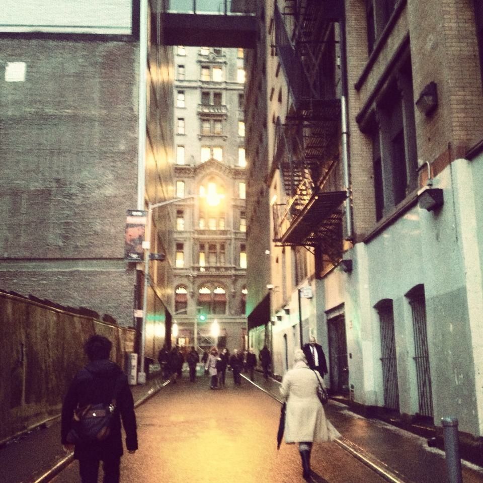 พันผ้าพันคอสีเลือดหมูที่เพิ่งซื้อมาจากถนน Fifth avenue เมื่อคืน พร้อมละสำหรับการสำรวจเมือง big apple