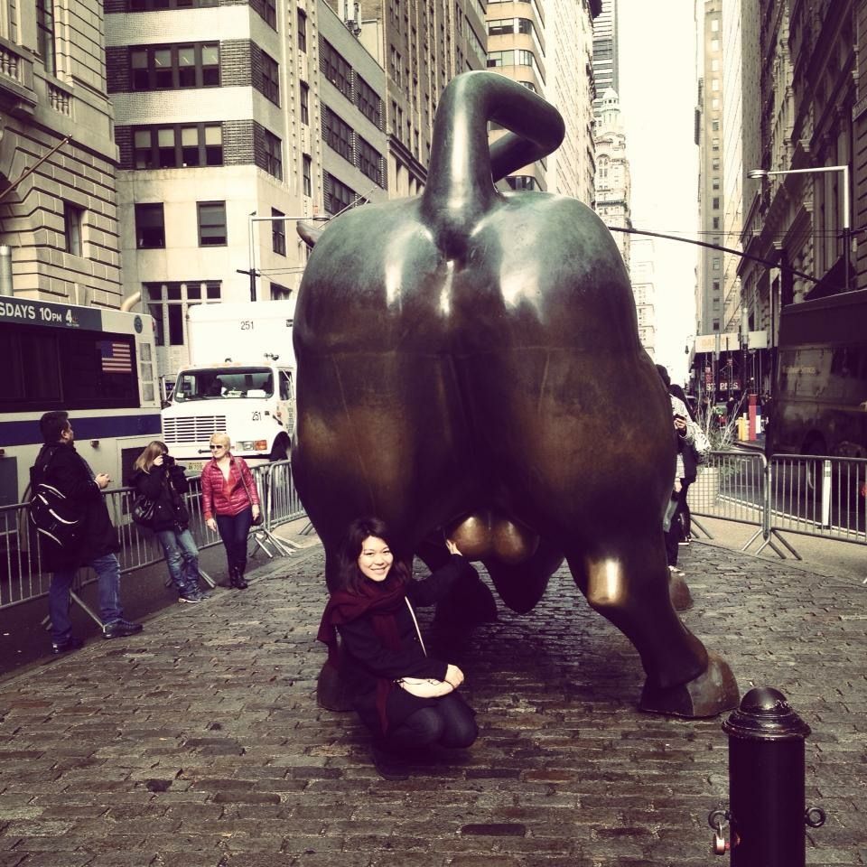 หลังจากนั้น ก็เดินไปหาคุณกระทิง Charging bull ชื่อดังสัญลักษณ์แห่ง Wall street ถนนที่เป็นศูนย์กลางการเงินของโลก ที่ตั้งของตลาดหลักทรัพย์ New york stock exchange เป้าหมายคือ ไปลูบไข่!! 5555 เพราะเค้าบอกกันว่าถ้าลูบไข่แล้วจะร่ำรวยเลยนาาา ลูบนานมากก แต่กลับมาก็ยังซื้อหวยไม่เคยถูกเล้ยยยย แซ้ดดดด เอ๊ะ หรือต้องลองไปซื้อหุ้นวะเนี่ย?