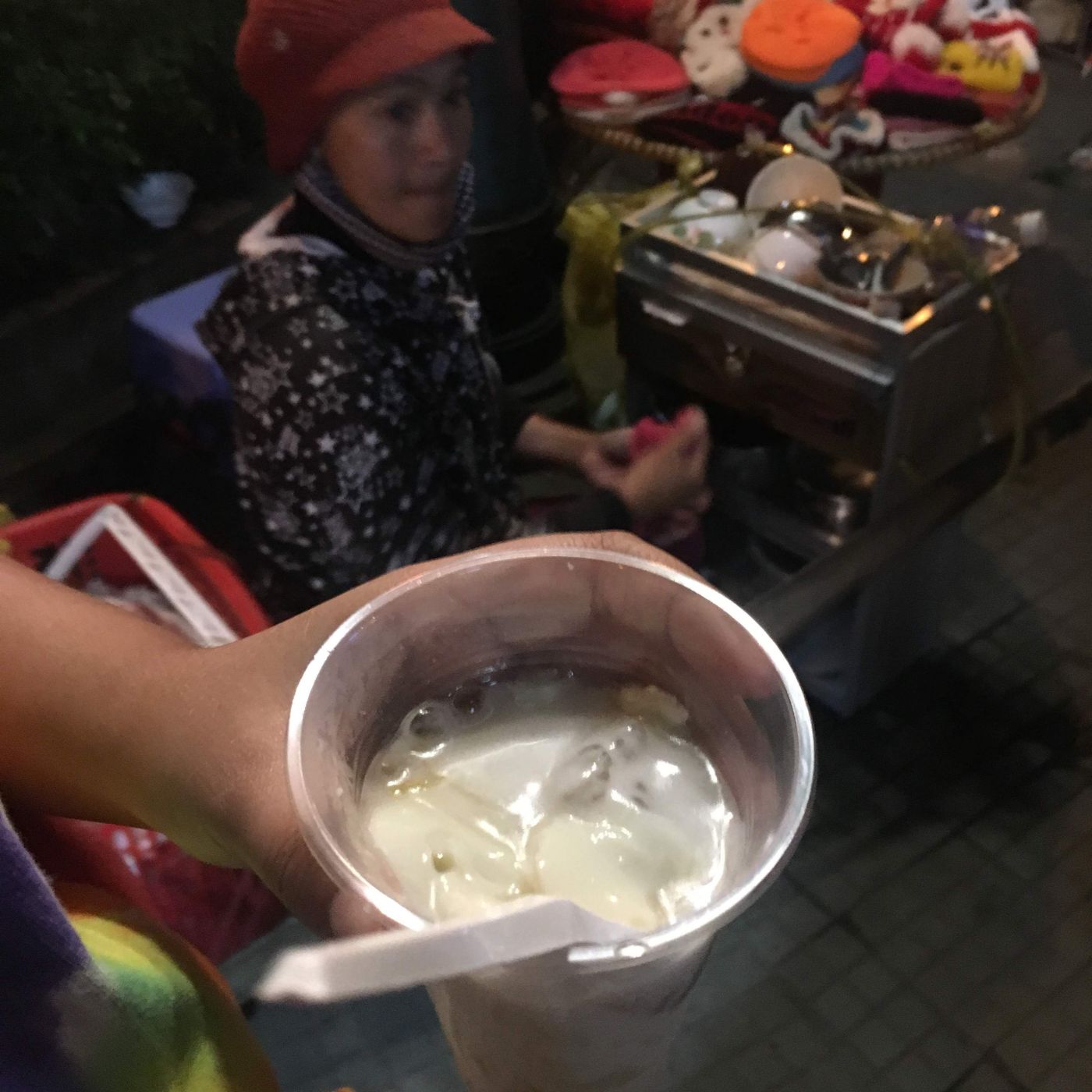 เราไม่รู้ว่าน้องเรียกว่าอะไร แต่ว่าน้องคือน้ำเต้าหู้ที่ให้อารมณ์พุดดิ้ง ร้อนๆอุ่นๆ ด้านล่างจะเป็นแป้งเหนียวๆ ด้านบนราดด้วยน้ำเชื่อม อาจจะมีกลิ่นขิงนิดนึง แต่อร่อยมากกกกกกทุกคน เรากินไปหลายแก้วมากๆ ทานน้องอุ่นๆ ตอนอากาศเย็นๆ มันฟินมาก พูดถึงแล้วอยากทานอีก Y_Y แนะนำจริงๆนะคะ