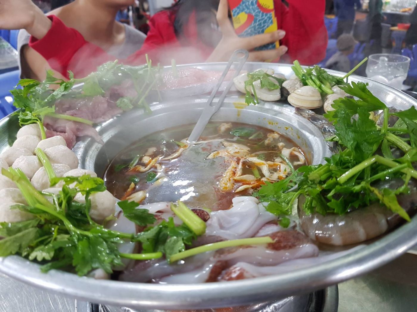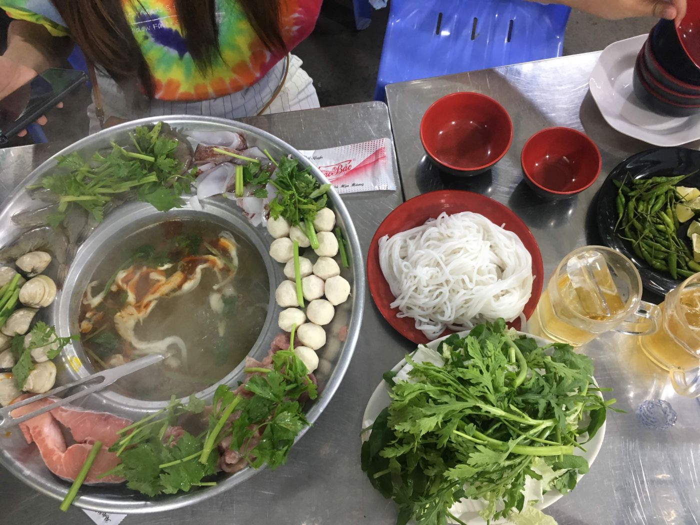 อธิบายเจ้าหม้อไฟนี้ก่อน เป็นเหมือนชาบูบ้านเราเป๊ะเลย แค่รูปร่างหม้ออาจจะแปลกๆนิดนึง แล้วก็มีเครื่องเคียงเป็นเส้นขนมจีนค่ะ ส่วนราคาเราจำไม่ได้จริงๆ แต่ไม่แพงเลย หารกัน 5 คนหมดไม่เกิน 300 บาทไทยแน่นอน เรื่องรสชาติขอบอกว่า อร่อยยยยยยย นะทุกคน มันอร่อยจริงๆ เราสั่งเซตทะเล เนื้อแล้วก็อาหารทะเลของเค้าสดจริงๆ คนไทยทานได้แน่นอนรับรองเลยย
