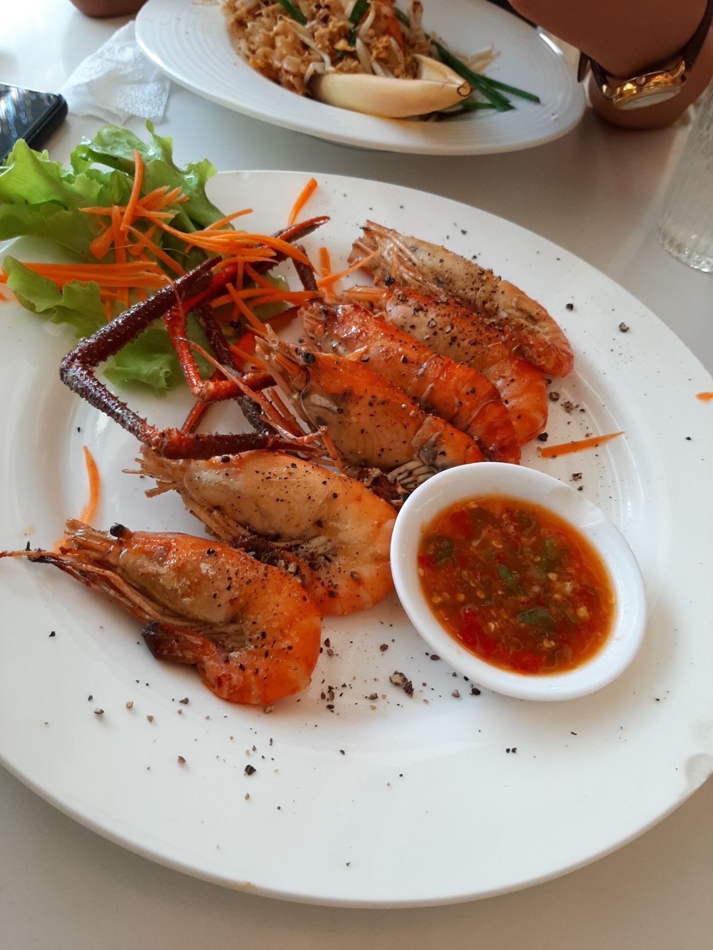 (กุ้งเผาที่เราเฉย ๆ แต่ผัดไทยกุ้งของน้องอร่อยยย :P )