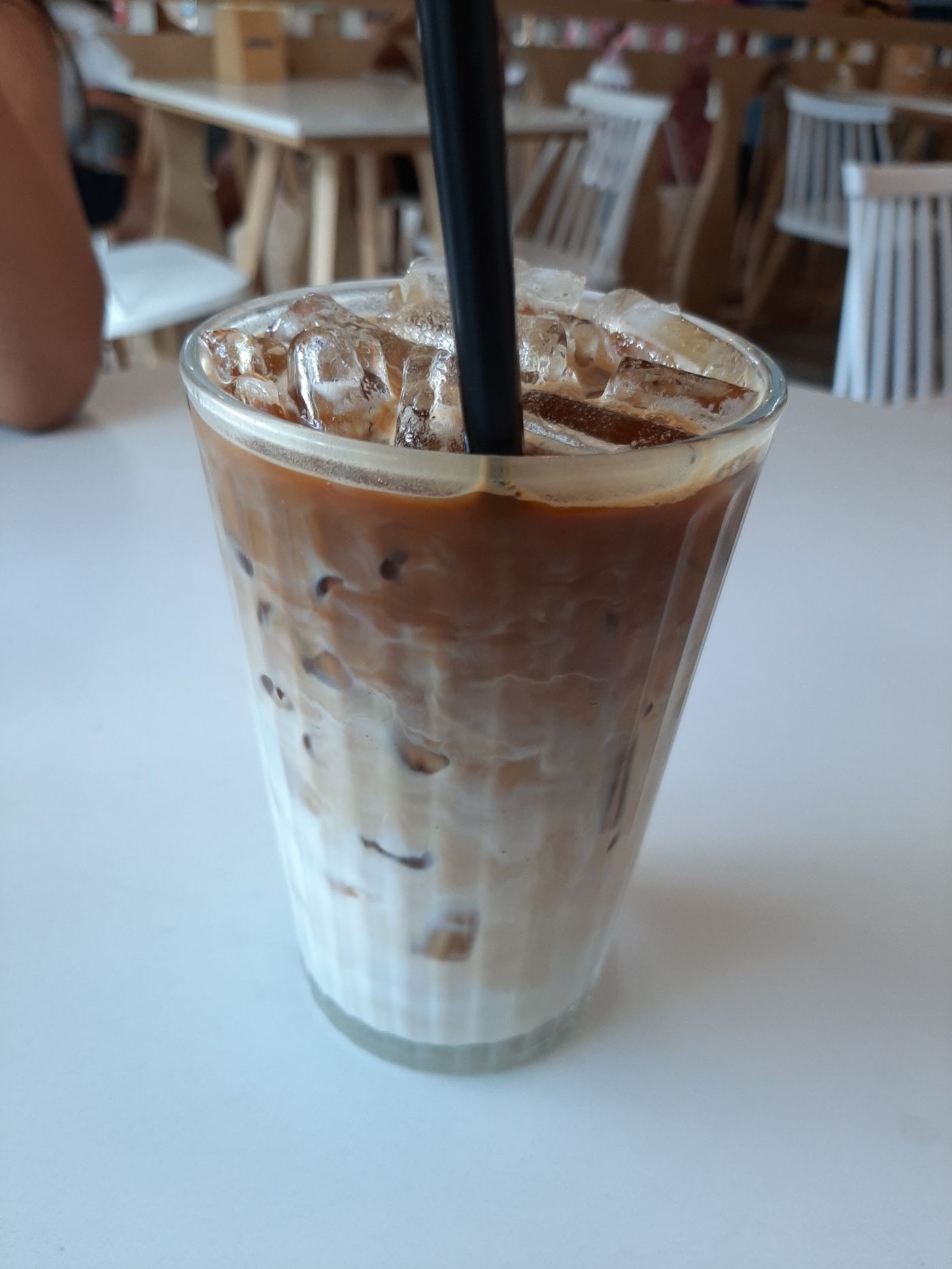 วันสุดท้ายของทริป เรากับน้องตื่นกันประมาณ 8โมงเช้า ก็รีบอาบน้ำแต่งตัว เก็บข้าวของและเช็คเอ้าท์ออกจากที่พักประมาณเกือบ ๆ 10โมง ทางที่เดินจากที่พักไปยังท่าเรือมีคาเฟ่อยู่หลายร้านมาก เรากับน้องก็เลยตัดสินใจเลือกมาสักร้านแล้วนั่งทานมื้อเช้าที่นั่น
