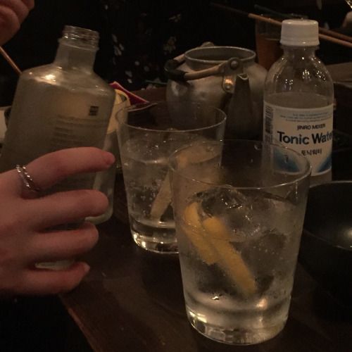 ตอนนี้เวลาสองทุ่มจะสามทุ่ม ยังไม่ใช่เวลาของอีกคนที่จะต้องขึ้นร้อง ทำให้บนโต๊ะของเขาแทนที่จะมีแค่เขาคนเดียวกลับมีใครอีกคนนั่งอยู่ด้วย วันนี้ซึงยอนใส่เสื้อเชิ้ตสีเชิ้ตสีฟ้าอ่อน กางเกงยีนส์สีอ่อนเข้ารูป ยิ่งทำให้เห็นถึงความหุ่นดีของอีกคนมากขึ้น และอาจจะดูดีมากขึ้นเพราะผมที่เริ่มยาวและทำสีแบบนั้น