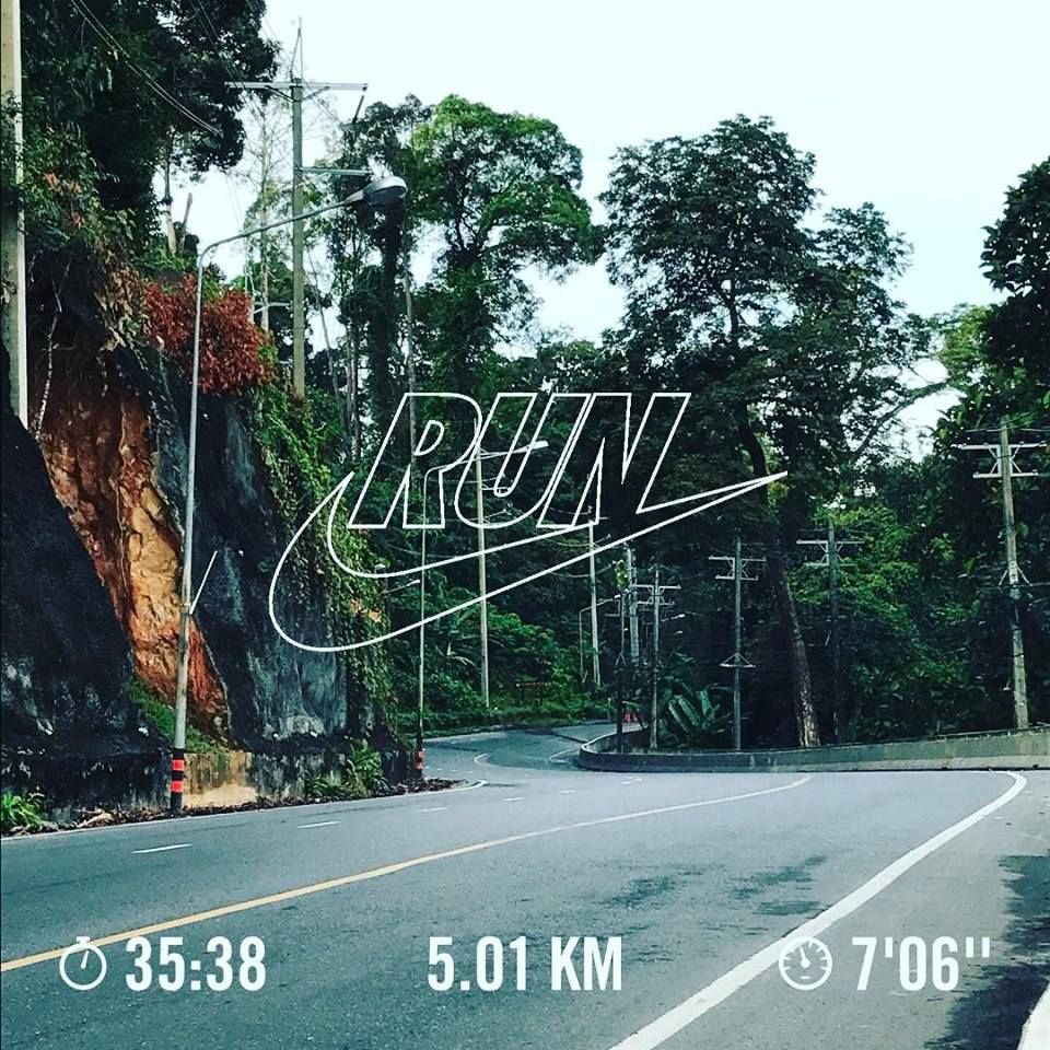 04:30 น. เวลาตื่นของวันนั้น ตอนวิ่งกังวลมากกับการขับถ่ายเลยนั่งเล่นอยู่ในส้วมนานมาก และด้วยความที่นั่งนานมากทำให้ออกสายนิดหน่อย แต่จากบ้านไปโรงแรมประมาณครึ่งชั่วโมง เราลากพี่เค้าไปด้วย เอาไว้ถือของ ถึงพี่เค้าจะไม่อินสักเท่าไหร่ เมื่อถึงโรงแรมที่จอดห่างจากโรงแรมค่อนข้างมาก แต่ดีที่มีรถรับส่งซึ่งโรงแรมจัดหาไว้ให้ ระหว่างทางกินแค่กล้วยลูกเดียว ไม่ได้กินน้ำไปเลย พอไปถึงสนามก็โทรหาพี่สุวรรณ พี่เค้าถึงตั้งนานแล้ว กำลังดูหลานแข่งวิ่งอยู่ ได้ทักทายแค่เล็กน้อยเท่านั้นเราก็เริ่มวิ่งในระยะ 5 ไมล์