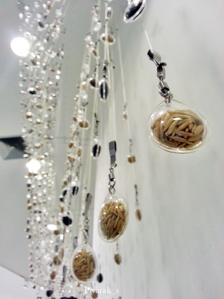 ไฮไลท์ของนิทรรศการนี้สำหรับเรา คือ 'วันที่พ่อไม่อยู่' แต่โครงการที่พระราชาที่ได้ชื่อว่าเป็นพ่อของแผ่นดินยังอยู่ และสิ่งที่พระองค์ฝากเอาไว้ก็ยังอยู่ให้คนอื่น ๆ ไม่ว่าจะใครก็ตามได้มาสานต่อให้เกิดความยั่งยืนต่อไป ความเท่ของงานนี้ก็คือ เอาสิ่งของต่าง ๆ เช่น ข้าวเปลือก ดิน ปุ๋ยสูตรพระราชทานฯลฯ ใส่กรอบรูปหยดน้ำจำนวนเท่ากับโครงการในพระราชดำริ แล้วเอามาแขวนเอาไว้