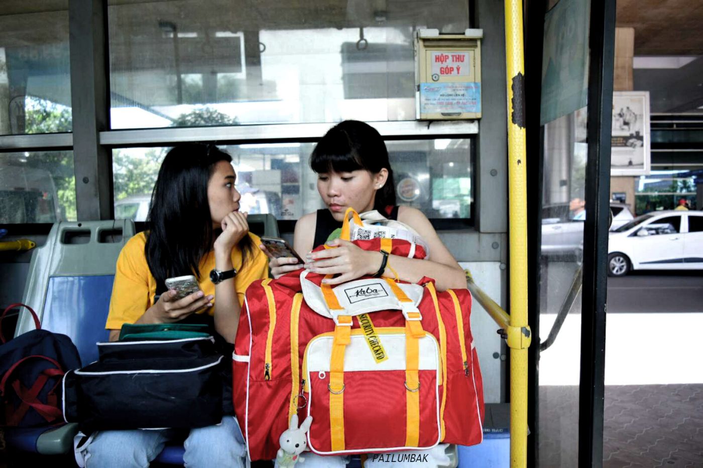 คนไทยมาเยอะมาก เยอะพอๆกับทัวร์จีนมาไทยไรงี้ #ว้าวเวียดนามหน้าร้าวไม่รู้ตัวจากนั้นเราก็ตามรีวิวที่ดูมาหมดจร้าาา...แลกเงิน(แลกบางส่วนนะคะ ไปแลกในเมืองเรทดีกว่า แต่แลกไว้จ่ายค่ารถค่ากินไปก่อน เพื่อความอยู่รอด) ซื้อซิม เดินไปหารถเมล์ที่สแตนด์บายรอเราอยู่หน้าสนามบิน โก โก โก