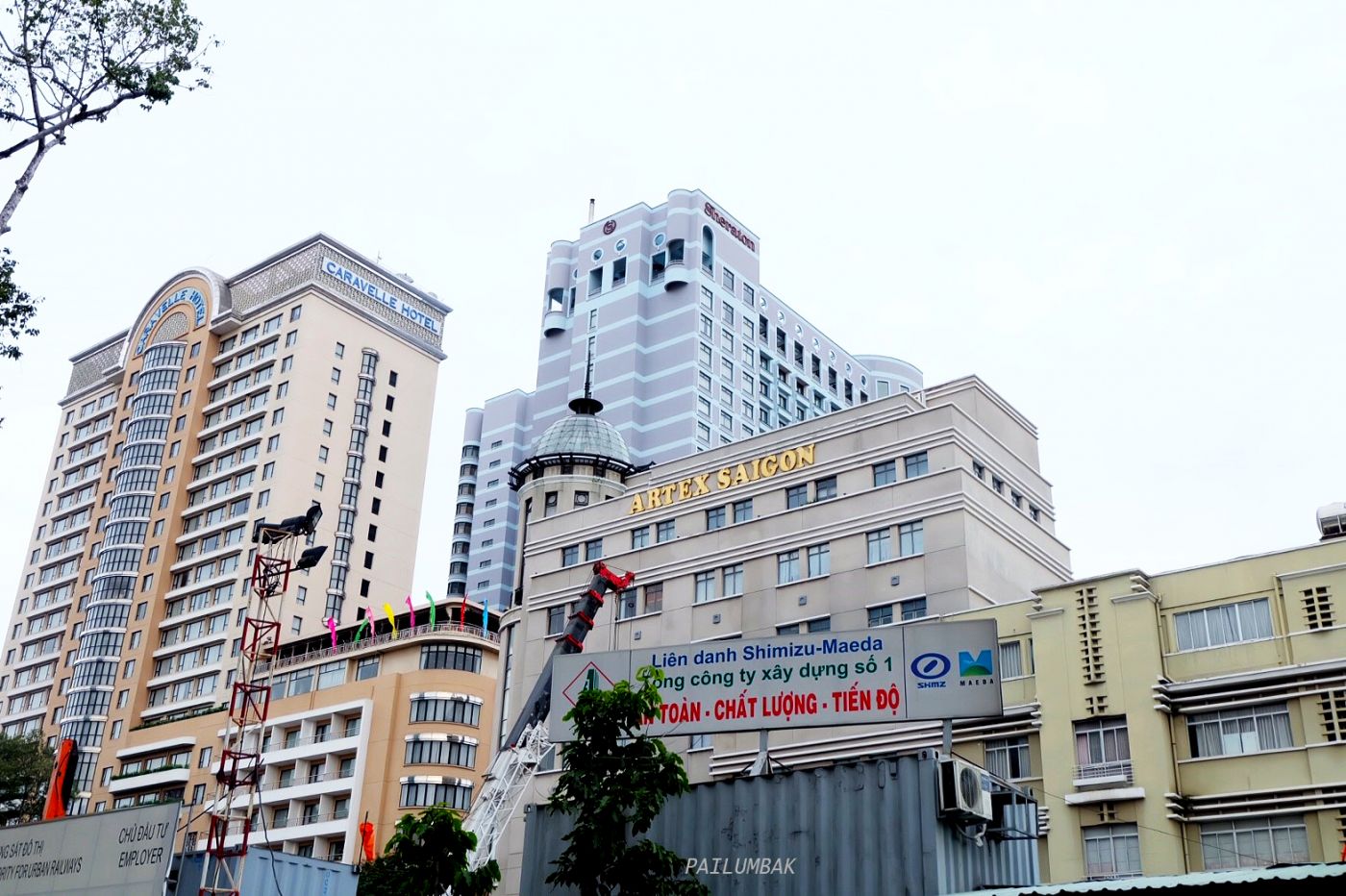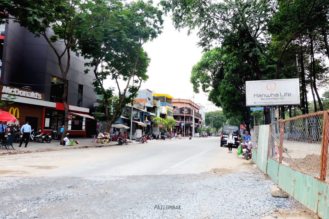 ลงจากรถเมล์ก็ต้องเดินข้ามถนนมาฝั่งตรงข้ามเดินไปย่านฟามงูเหลา (Pham Ngu Lao) เพื่อจะไปจองรถ ซื้อ one day trip (เนื่องจากไม่มีความสามารถพอในการที่จะขับรถเองที่เวียดนาม 55) แต่ส่วนใหญ่ไปไหนที่ต้องเที่ยวหลายที่ในวันเดียวเราก็จะซื้อ one day trip เพราะจะได้เที่ยวสะดวก ไม่หลงให้เสียเวลา และถือเป็นการเซฟตัวเอง เพราะถ้าขับรถเองแล้วเกิดอุบัติเหตุนี่ไม่อยากคิดเลย กลัวโดนหมดโควต้าในการเที่ยวกับเพื่อน ต่อๆๆ สังเกตุได้ง่ายๆว่ามาถูกฝั่งมั้ย คือเมื่อข้ามมาฝั่งนี้ก็จะมีร้านแมคโดนัล และสวนสาธารณะ เราก็เดินตรงไปเรื่อยๆๆ จำไม่ได้ว่าไกลมั้ย แต่เดินไปเดินมาก็รู้สึกว่าใกล้กันนะ