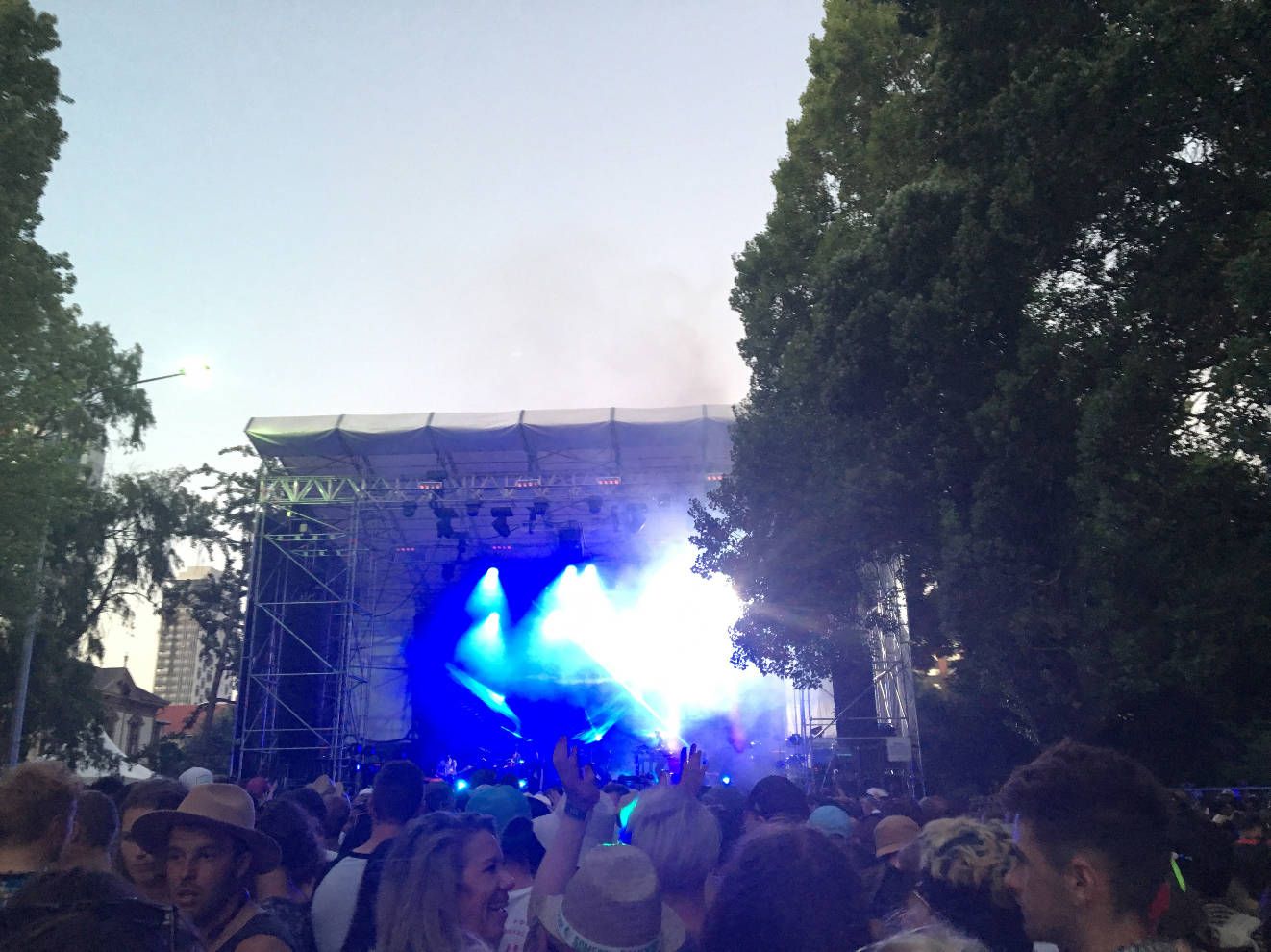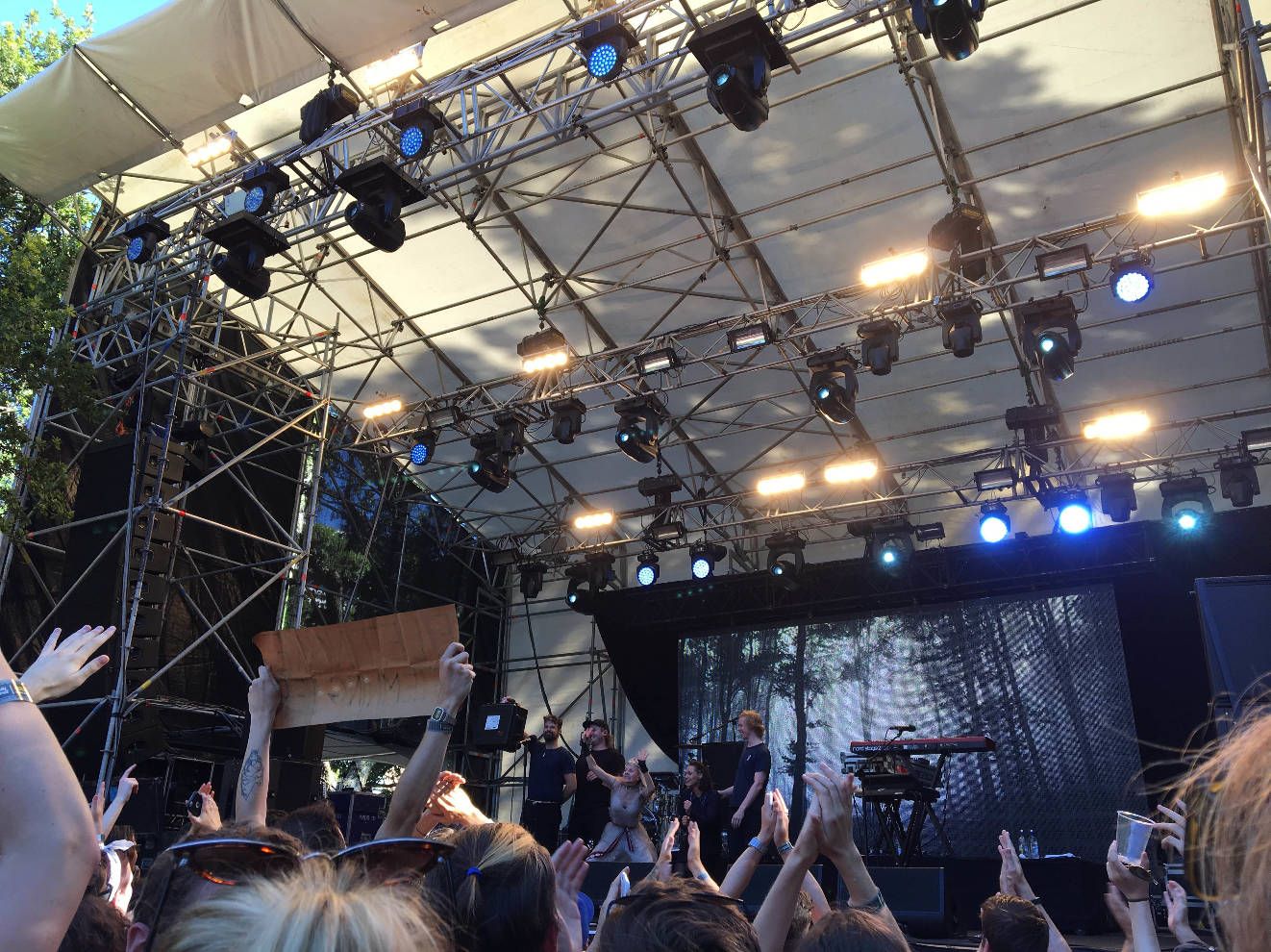 ยืนรอเฉยๆเกิน 40 นาทีจนเมื่อยเท้า แล้ววงเริ่มเลทอีกประมาณ 10 นาที แต่คนก็เดินออกมาเป็นพักๆเพราะตารางซ้อนกับเวทีอื่นเหมือนกัน เราเลยได้ไปยืนใกล้เวทีขึ้นเรื่อยๆ แต่ก็มองไม่เห็นอะไรอยู่ดี เราเริ่มท้อใจว่าจะสนุกมั้ย หันไปถามฝรั่งข้างๆนางก็บอกไม่เห็นอะไรเลยเหมือนกัน เลยสบายใจละ เตี้ยอย่างเท่าเทียม ไม่มีใครมองเห็นอะไรทั้งนั้น