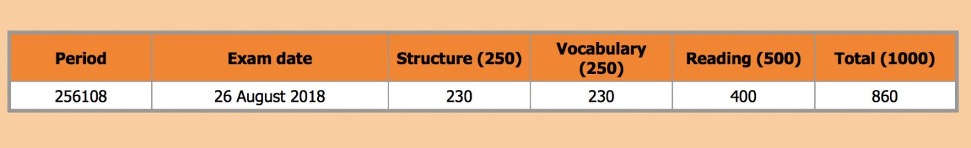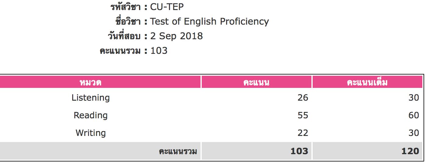 คะแนนที่ออกมาก็เท่านี้ค่า TU-GET ได้ 860/1000 CU-TEP ได้ 103/120