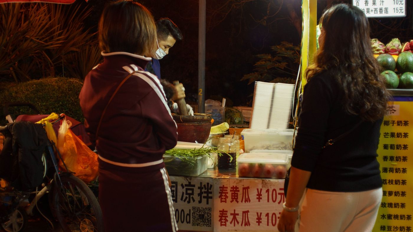 เราเดินผ่านย่านนู้นย่านนี้แวะดูนู่นนี่ ดูแล้วก็เป็นเมืองค่อนข้างวุ่นวายอยู่พอประมาณ ผู้คนที่นี่เริ่มยิ้มแย้มให้ละ น่ารักขึ้นมาหน่อย (ระหว่างทริปนี้คนที่เมืองจีนไม่ค่อยจะยิ้มให้เลยครับ) สถานที่เที่ยวที่หาข้อมูลมาค่อนข้างจะเป็นทางตามรอยวัฒนธรรมเก่าๆ ตามหาชาวไทลือซะมากกว่า ต้องซื้อเป็นทริปหรือทัวร์ไป ถ้าไปคนเดียวโดนหนักแน่นอนเราเลยเดินเล่นเอาก็พอ