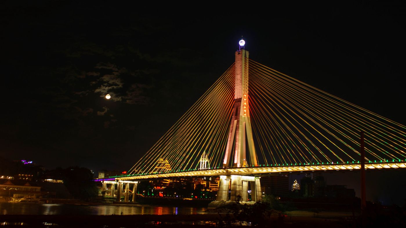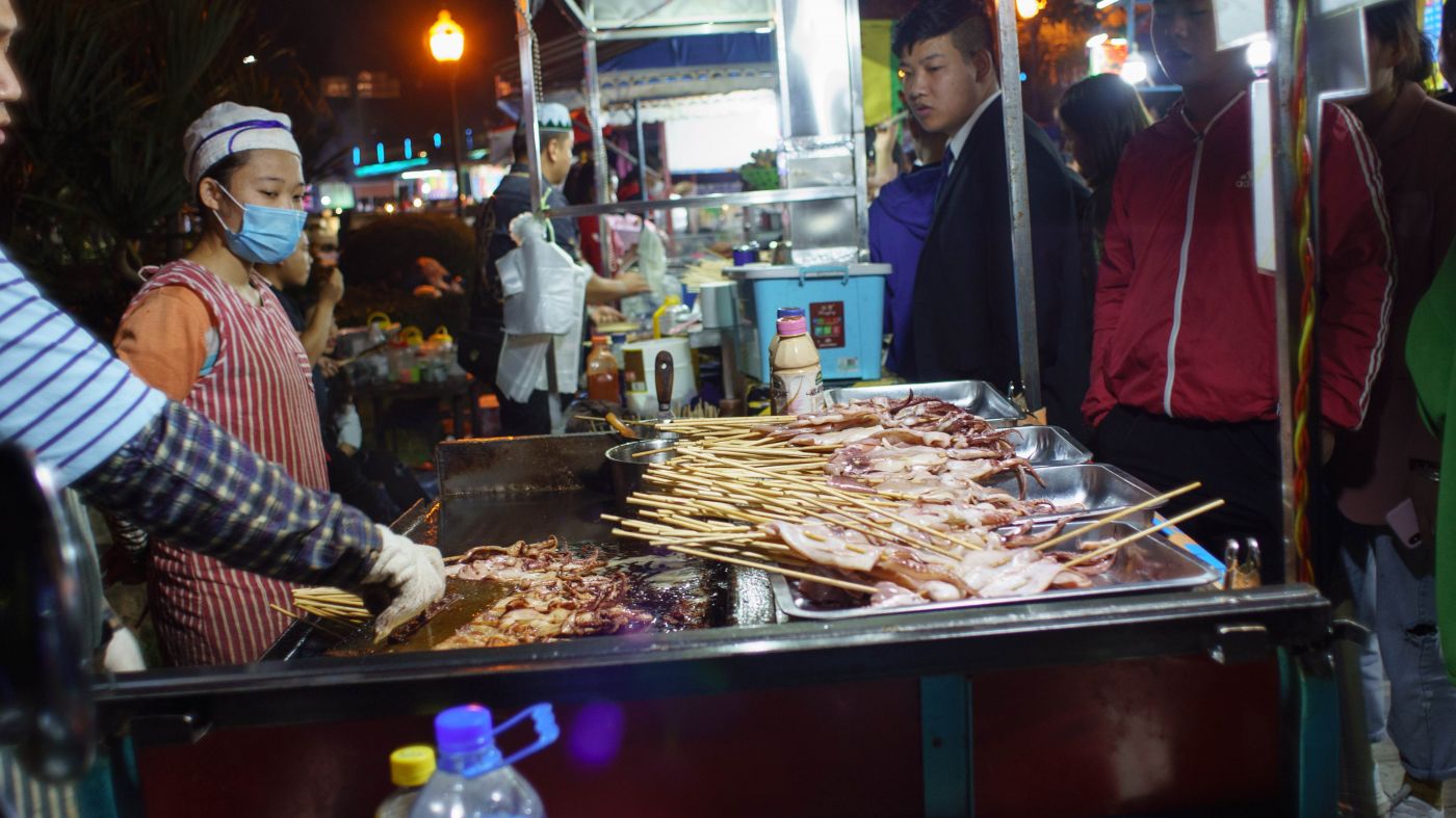 เราเดินเล่นจนเย็นแล้วก็เดินกลับมาที่สะพานจิ่งฮง เราจะมานั่งเล่นกินเบียร์บนนี้แหละ อากาศดี วิวดี ผู้คนเยอะดี เอ่อข้างๆสะพานเหมือนมีตลาดคนเดิน ตลาดนัดด้วย ฝากท้องไว้ทีนี้ได้ แต่เราโดนข้าวตามทางมาละเลยซื้อของกินเล่นและเบียร์ก็พอ