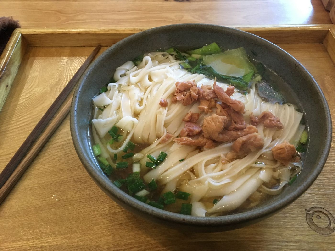 เหมือนเดิมกองทัพต้องเดินด้วยท้อง เราเดินย้อนขึ้นมาจากที่พักหน่อยก็จะเป็นย่าน คล้ายๆย่านช้อปปิ้งมีห้างอยู่สองสามห้าง มีร้านค้าอยู่ข้างถนนเพียบ จัดไปก่อนเช้านี้ 15หยวน ก๋วยเตี๋ยวคล้ายๆเส้นใหญ่บ้านเราแต่นุ่มกว่าเนื้อก็ให้เท่าที่เห็น เศร้าาาา