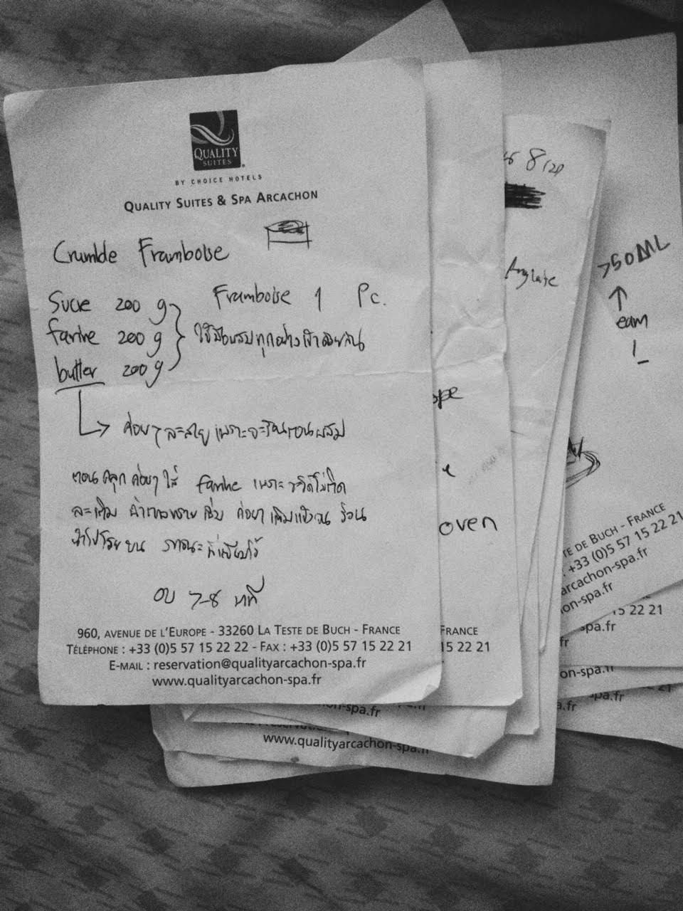 'กระดาษจดสูตรสมัยอยู่ที่นู่น เขียนให้ตัวเองเข้าใจคนเดียว ที่น่าเศร้าก็คือตอนนี้อ่านเองก็ไม่เข้าใจแล้ว'