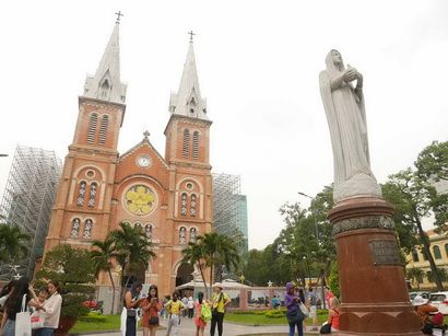 เดินตรงมามองขวาจะเจอsaigon squareหรือลานที่มีอนุเสาวรีย์ลุง Ho Chi Minh ยืนโบกมือทักทายนั่นแล เลี้ยวซ้ายไปนิดนึงจะเจอโบสถ์ ข้างๆโบสถ์คือไปรษณีย์ แค่5นาทีก็เช็คอินไปแล้ว3จุดสวยๆ แต่ณจุดนี้เดินเข้ามินิมาร์ทก่อนคะ หิวน้ำโฮก ผลจากผงชูในน้ำก๋วยเตี๋ยวที่กินไป มินิมาร์ทที่นี่มีความแข่งขันกันสูงอยู่ มีทั้ง7-11, K-mart ,Mini stop ของนำเข้า80%เลย ขนมญี่ปุ่น เกาหลี ไทย มีขายหมดราคาพอกับบ้านเรา ขนาดน้ำเปล่ารสชานมที่ฮิตๆกันก็ยังมี ออกมาจากมินิมาร์ทก็เข้าไปรษณีย์ก่อน ผู้คนนับล้านมาก สาวๆใส่ชุดอ๋าวหญ่ายรัดรูปอวดเอวเอสมาถ่ายรูปกันเป็นทีม ดูน่ารัก