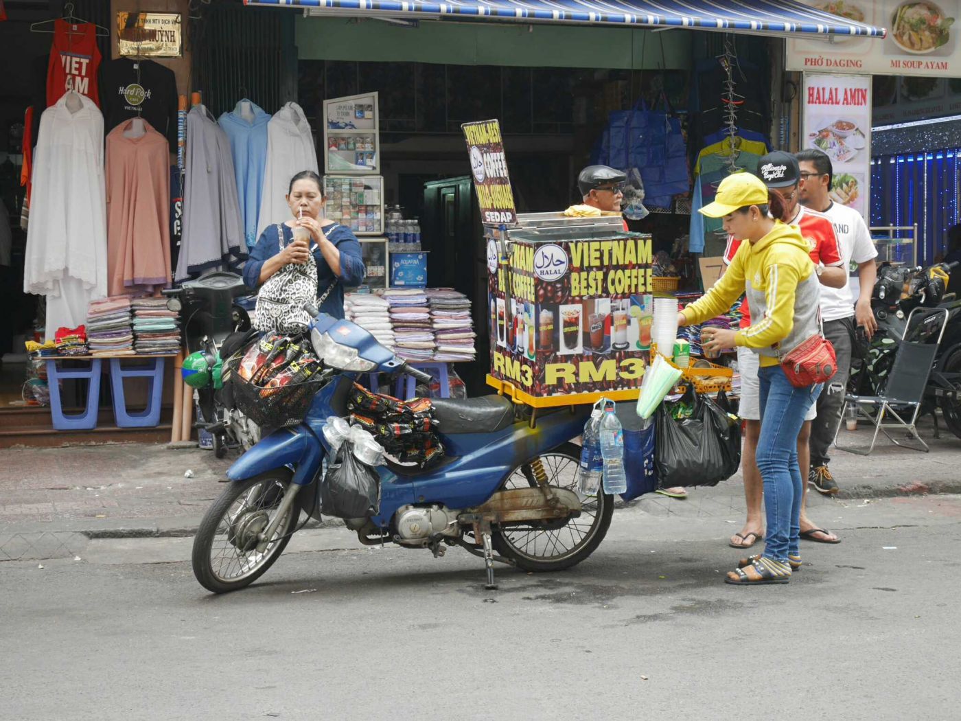 กินเสร็จเดินออกมาหน้าร้าน เจอมอ'ไซค์ในตำนานจ้า มอ'ไซขายกาแฟเวียดนามที่แท้ต้องกินกาแฟจากมอ'ไซ แต่พอดีเป็นคนไม่กินกาแฟ ขอเก็บภาพประทับใจก็พอ