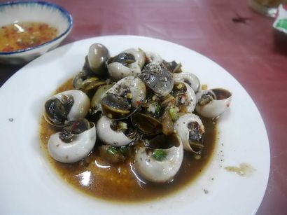 จานแรกมา อย่าถามว่าคือหอยอะไร ไม่รู้จิงจี แต่รสชาติมันใช่ หวานเค็มเผ็ดลงตัว มีกากหมูเจียวโรยมาอีก แซ่บเวอร์ วิธีกินคือเอาส้อมจิ๋วที่เค้าให้มาแคะเนื้ออกมากินค่ะ ช้อนจิ๋วตักน้ำซดตามรัวๆ
